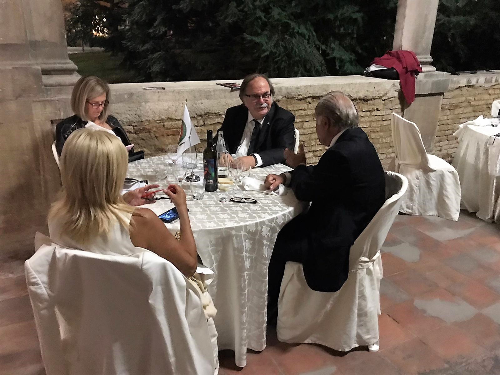 La riunione conviviale, prima della pausa estiva, si è tenuta nella splendida cornice del ristorante Monnalisa, presso il Grand Hotel da Vinci di Cesenatico, alla presenza di numerosi Accademici e ospiti, tra i quali il neoeletto Rettore dell’Università di Bologna, prof. Giovanni Molari, accompagnato dalla consorte Alessandra. Durante la riunione conviviale è stato celebrato l’ingresso di due nuovi Accademici, Emanuela Pagliarani Ghini e Paolo Montalti, presentati rispettivamente da Gianluigi Trevisani e Oreste Di Giacomo (Foto 1), e la presentazione della Consulta della Delegazione per il prossimo triennio (Foto 2). La cena si è svolta interamente all’aperto, con un ricco aperitivo di benvenuto approntato nella terrazza a bordo piscina, a cui è seguito un raffinato menu servito al tavolo, composto da tonno rosso scottato al pistacchio di Bronte (Foto 3), gratinato di pesce, molluschi e crostacei in carta papiro, mambrini con spigola, vongola e fiori di zucca, delizia di frutti esotici con basilico e menta (Foto 4). La serata si è felicemente conclusa con l’augurio di buona estate da parte del delegato Claudio Cavani e un arrivederci alla ripresa delle attività.