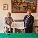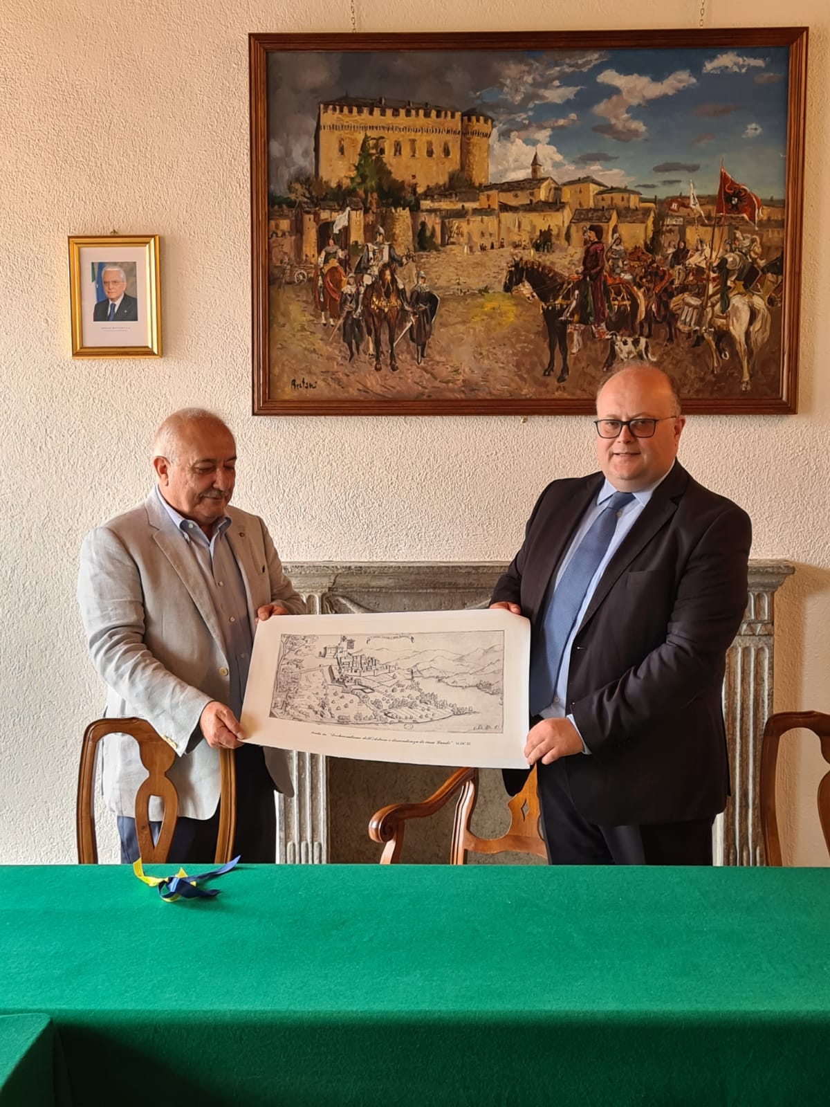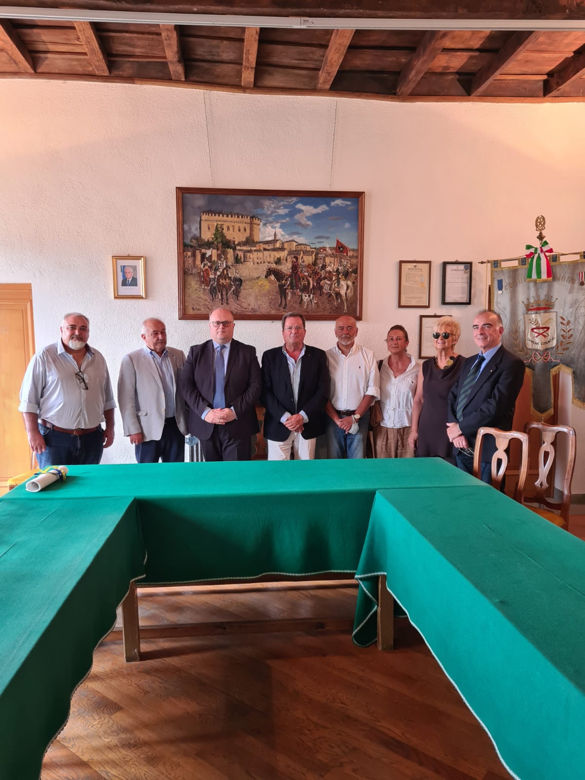 La Delegazione Di Borgo Val di Taro, nel contesto degli eventi organizzati dal Comune di Compiano, che rientra nell’elenco dei Borghi più belli d'Italia, ha partecipato con una riunione conviviale sul tema “Il sottobosco, risorsa dell'Appennino”. Il Delegato e gli Accademici hanno potuto visitare gli storici palazzi del borgo e i locali del Comune dove, nella Sala Consiliare, la Delegazione è stata premiata per l'impegno profuso nel territorio e omaggiata dal Sindaco con una stampa che tratta della discendenza dei Landi del 1603. Foto 1. Accademici in Sala Consiliare. Foto 2. Consegna della stampa al Delegato.