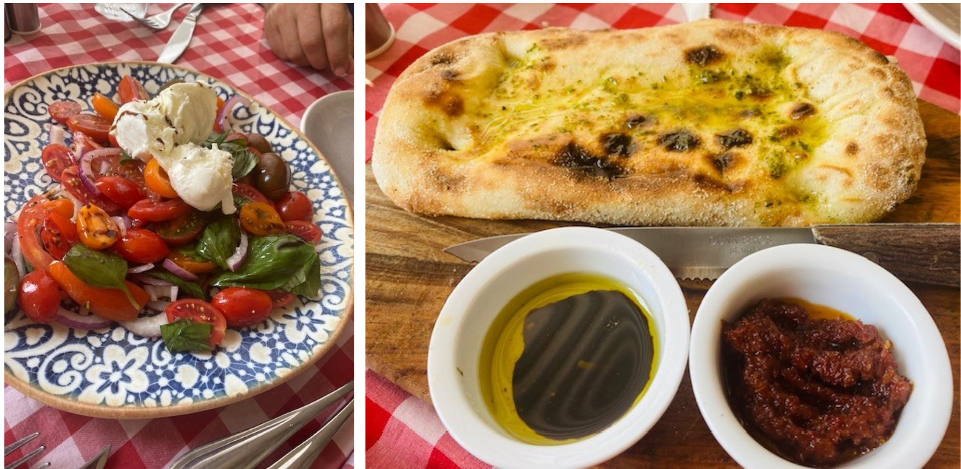 Una rappresentanza accademica della Delegazione ha visitato la trattoria-pizzeria Giardino Bello di Tel Aviv, gestita dallo chef Anny Benjamin che ha vissuto in Italia per un lungo periodo, spostandosi in varie città alla scoperta della tradizione culinaria regionale itallana; a queste città ha dedicato il nome dei piatti del suo vario e interessante menu. Il luogo è molto "pastorale" nonostante si trovi nel centro della città, rendendo l'atmosfera molto piacevole e rilassante. Foto 1. A destra, la Delegata Cinzia Klein con una delle ospiti, la dott.ssa Galit Lavie. Foto 2. La Delegata con lo chef. Foto 3. Insalata Liguria; focaccia Giardino Bello. Foto 3. Fettucine Torino; spaghetti al pesce Livorno; pesce al forno Catania.
