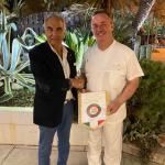 La Delegazione di Ragusa si è riunita presso il ristorante "Le Gramole" per una piacevole serata accademica alla presenza di numerosi ospiti. Foto 1. Il Delegato Vittorio Sartorio (a destra) con il Consultore Francesco Milazzo (gà Delegato di Ragusa). Nelle foto 2-3. Panoramica del tavolo imperiale. Foto 4. Il Delegato Vittorio Sartorio consegna la vetrofania allo chef Fabio Ulcano, autore di una cena veramente degna di nota.