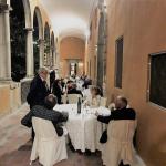 In occasione delle manifestazioni organizzate dal Comune di Ravenna a celebrazione del settecentenario dalla morte di Dante, la Delegazione di Ravenna, unitamente alle altre Delegazioni della Romagna, ha organizzato una cena dal titolo “700 VIVA DANTE” nella storica cornice dei chiostri della Classense. L’incontro conviviale ha inteso proporre una rivisitazione della cucina e dei cibi impiegati nelle varie preparazioni ai tempi del grande poeta. Il Delegato Davide Rossi ha sottolineato come la promozione di iniziative dirette alla ricerca anche a livello storico dei cibi e delle preparazioni gastronomiche rientri tra i compiti fondamentali dell’Accademia. Pur non offrendo Dante nelle sue opere molti spunti in tema di cibi e di cucina, il XIII secolo, epoca cui lo chef si è ispirato, risulta abbastanza ricco di informazioni. Sono infatti sopravvissute sino ai giorni nostri, scritte nella maggior parte delle lingue europee, più di 70 raccolte di ricette medievali. La proposta dello chef, articolata a mo’ dei tre canti della Divina Commedia, è stata accolta con piacevole sorpresa dai partecipanti; ha permesso loro di calcare le orme della cucina di 700 anni fa, offrendo la possibilità di fare un ideale e personale confronto tra quello che si mangia di norma oggi e ciò che si metteva in tavola in un banchetto ai tempi di Dante. Come ha ricordato il direttore della Classense e della Cultura del Comune di Ravenna, prof. Maurizio Tarantino, cucina e gastronomia sono oggi indubbi elementi di cultura non solo materiale.