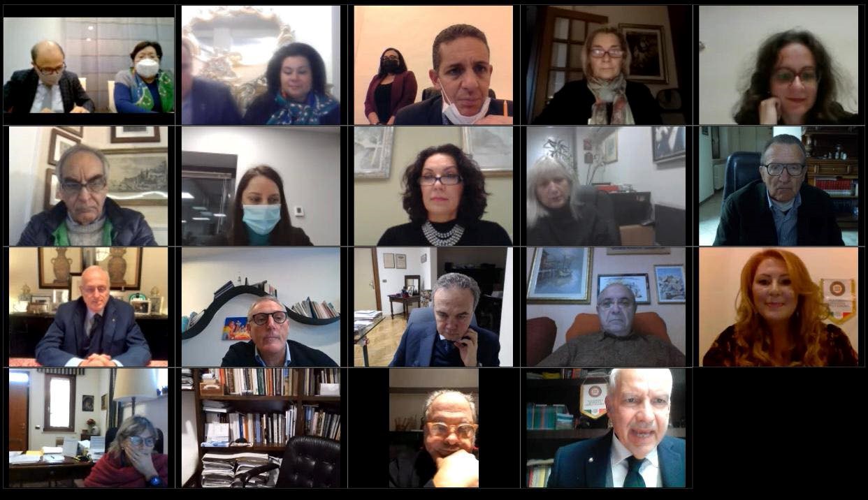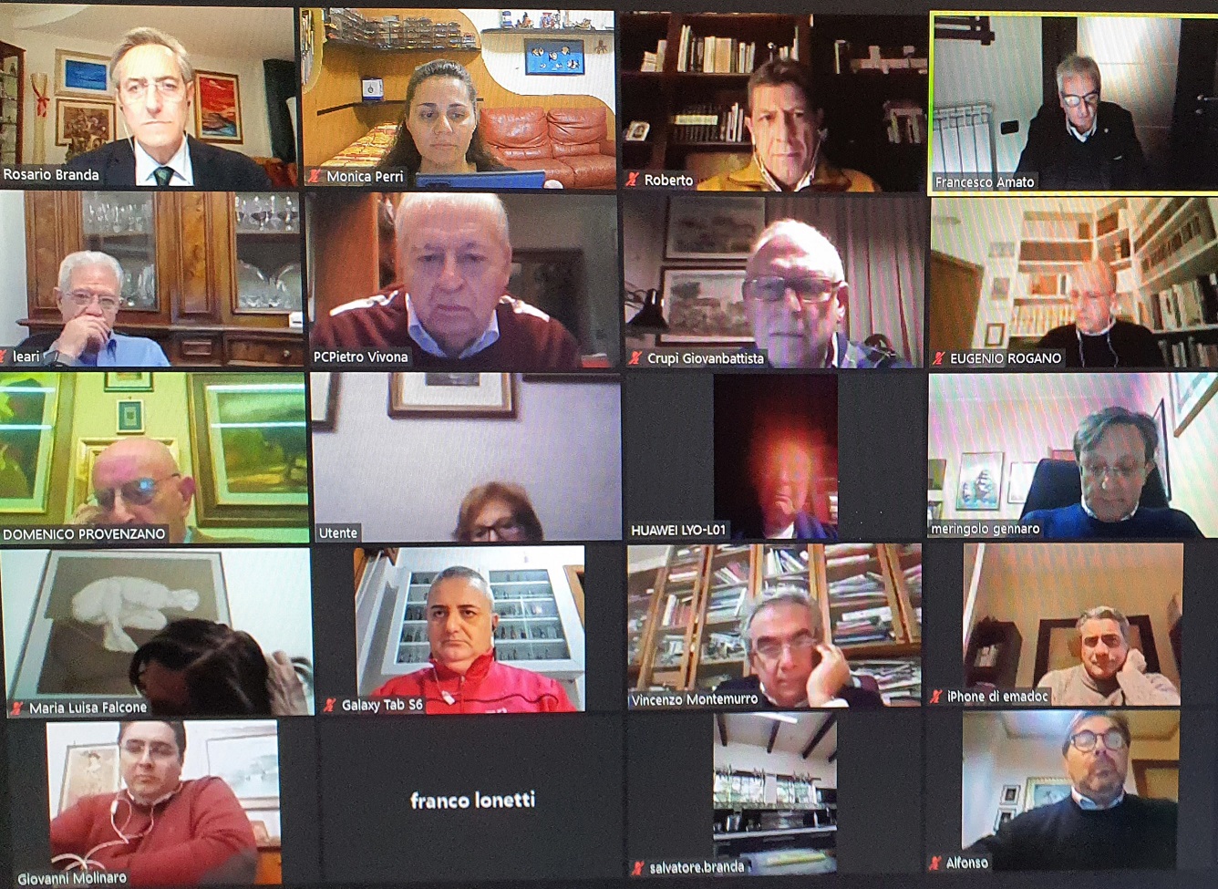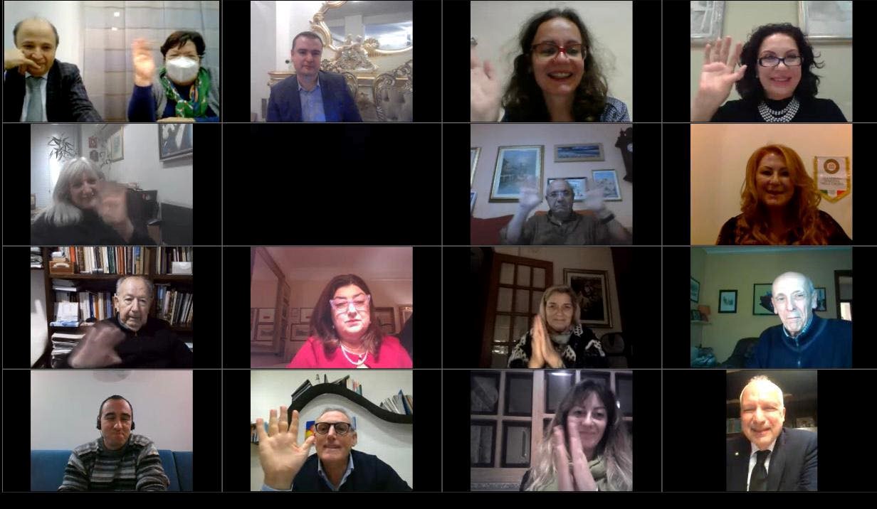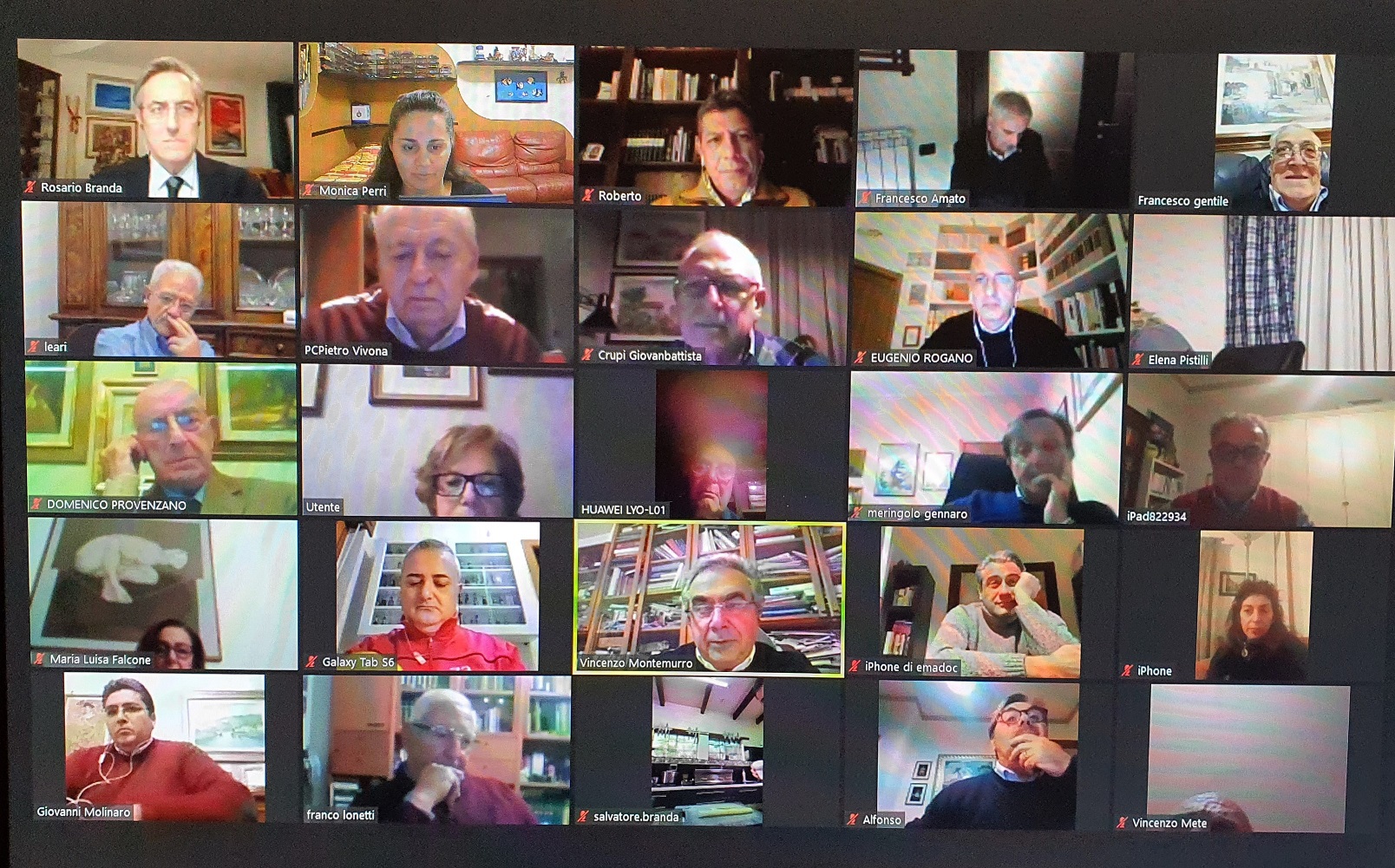 "Un grande abbraccio con la famiglia accademica per riunire i due emisferi e raccontare questo Natale dal punto di vista gastronomico": così il Delegato di Chieti, Nicola D'Auria, ha presentato "Natale con i tuoi", un incontro on-line (sulle piattaforme Zoom, YouTube e Facebook) sulle tradizioni natalizie a tavola, in cui sono intervenuti in diretta il Legato per lo Stato Città del Vaticano, i Delegati di San Francisco, New York, Rio de Janeiro, Lisbona, Sofia, Singapore, Brisbane, lo chef abruzzese Peppino Tinari e il presidente del Gruppo Virtuale Cuochi Italiani, Mario Caramella, in collegamento dalla Corea del Sud. Coordinati dal Vice Presidente Vicario Mimmo D'Alessio, e con il saluto del Segretario Generale Roberto Ariani, nelle due ore di incontro, gli intervenuti hanno delineato un quadro generale della cucina italiana delle feste in tutto il mondo, segnando anche idee e prospettive per il dopo-Covid. Un approfondimento culturale concluso con i bicchieri in alto per l'augurio di Buon Natale e di un più felice 2021. Foto 1. Delegati, Accademici e ospiti collegati sulla piattaforma. Foto 2. Il Segretario Generale Roberto Ariani. Foto 4. Il Delegato Onorario e Vice Presidente Vicario Mimmo D'Alessio conduttore dell'incontro. Foto 4. Mario Caramella in diretta da Jeju in Corea.