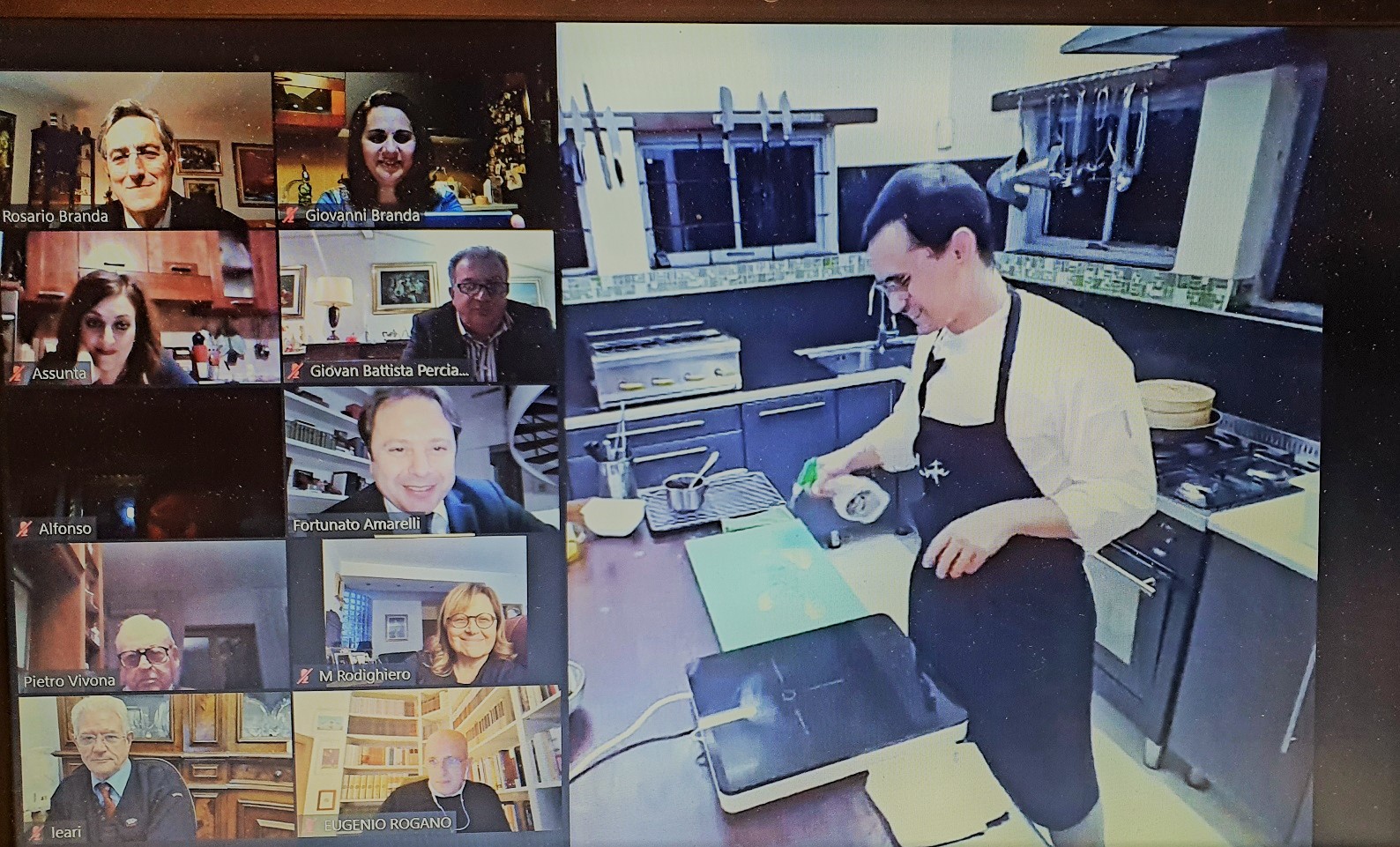 Con le ripetute chiusure e riaperture di ristoranti a New York e con la nuova chiusura dei ristoranti all’interno, la Delegazione di New York ha pensato di organizzare una riunione conviviale virtuale via Zoom per lo scambio degli auguri tra Accademici. Dopo aver suonato la campana accademica, la Delegata Roberta Marini de Plano (foto 1 e 2) ha dato il via alla riunione conviviale a cui ha partecipato anche lo chef della serata Federico Perandin, padovano, gestore di “Il Pastaficio” di Greenwich (CT), che sarà presto presente a New York con il suo ristorante. Scatole con ingredienti per tre portate, menu e istruzioni per la preparazione sono state consegnate tramite Fedex. In apertura, il salmone marinato in agrumi e odori assieme alla focaccia, seguito dai ravioli Emilia, conditi con burro e salvia. Perandin ha spiegato la preparazione del ripieno secondo la ricetta dei tortellini dell'Emilia-Romagna con prosciutto stagionato 24 mesi, mortadella e carne di maiale. Lo chef ha mostrato come fare un’emulsione di burro, acqua di cottura e salvia per condire i ravioli, il tutto poi spolverato da Parmigiano Reggiano presente nella confezione. A conclusione, Pandoro con una crema di mascarpone. Dopo la cena e l’augurio per un Natale sereno, la Delegata ha invitato gli Accademici a parlare delle proprie tradizioni culinarie natalizie. Grande entusiamo e anche interesse mediatico per il “viaggio inaugurale” nella cucina della pandemia, ossia “Quarantine Cuisine”, l'iniziativa della Delegazione di New York per continuare a mantenere le tradizioni accademiche e per sostenere comunque la ristorazione.