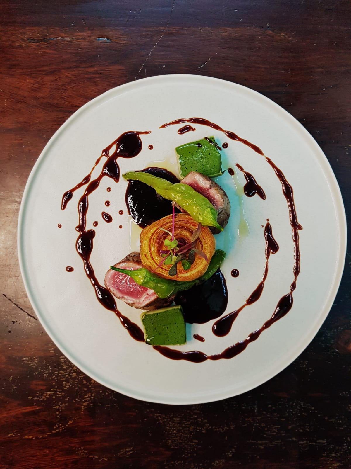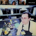 "Oggi si cucina a casa, in tandem con lo chef", è l'iniziativa della Delegazione di Cosenza dell'Accademia Italiana della Cucina che si è svolta in modalità a distanza. Salvatore Branda, chef del ristorante-guest house "La Sosta" Swellendam in Sudafrica (foto 1) ha preparato insieme agli Accademici in collegamento da casa (foto 2), una tartare di gamberi marinati agli agrumi e liquirizia di Calabria Amarelli, acqua di finocchietto selvatico, ricotta e cialda corallo allo zafferano (foto 3). Informati per tempo circa la lista degli ingredienti e gli utensili utili all’esecuzione della preparazione, sono stati numerosi gli Accademici che, seguendo i consigli dello chef, hanno realizzato il piatto in contemporanea. A conclusione della serata lo chef ha preparato anche un filetto d'agnello del Karoo con patata diversamente 'mpacchiusa, frigitelli e flan di spinacino selvatico (foto 4).