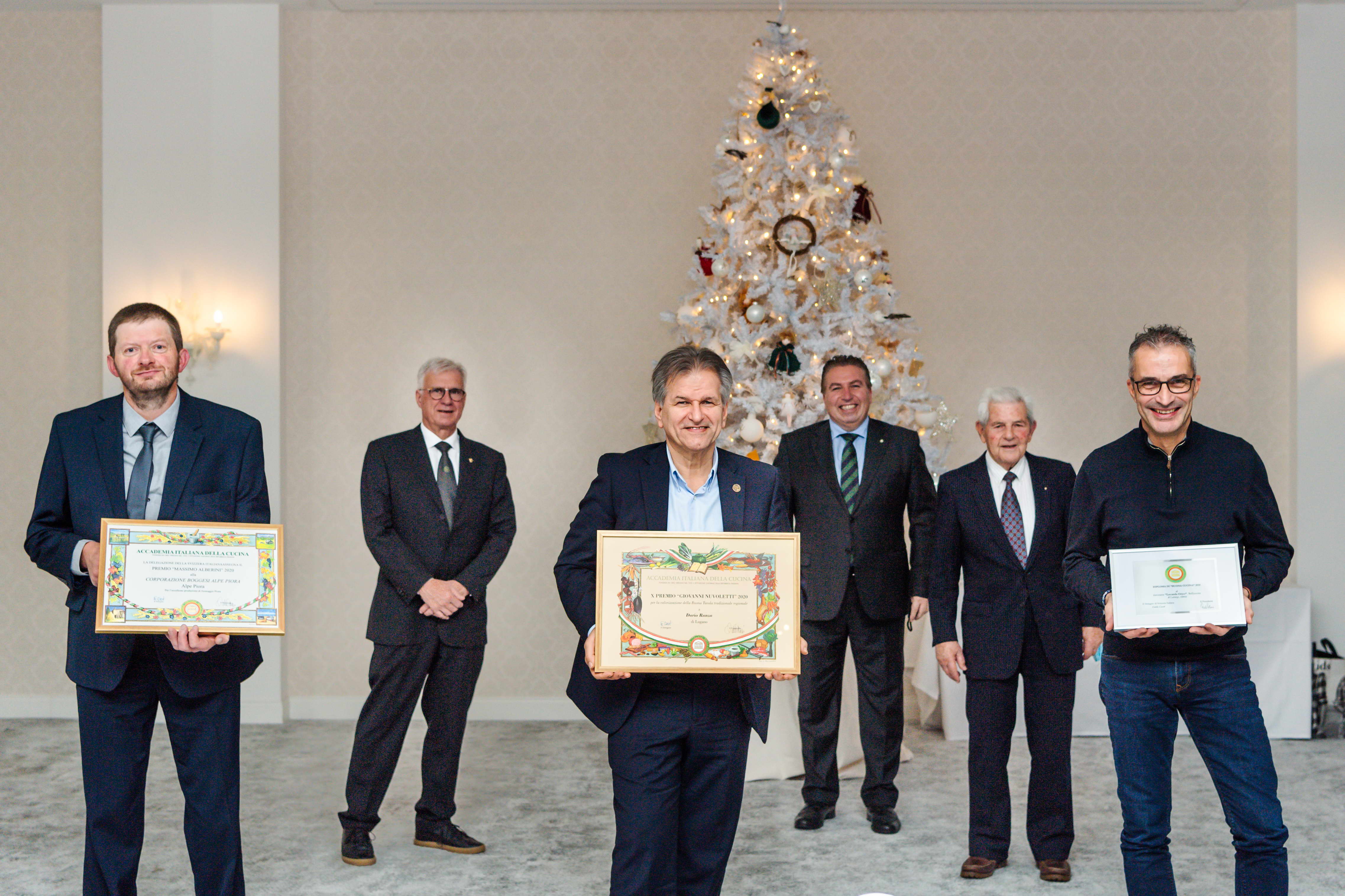 Il 1° dicembre, nel corso di una serata conviviale forzatamente riservata a un gruppo ristretto di persone a causa della situazione sanitaria, è avvenuta, presso l’hotel Splendide di Lugano, la consegna dei prestigiosi premi dell'Accademia a tre protagonisti della gastronomia e ristorazione ticinese. A Lorenzo Albrici della Locanda Orico di Bellinzona è stato conferito l’ambito “Diploma di Buona Cucina”; a Dario Ranza del ristorante Ciani di Lugano il premio “Giovanni Nuvoletti”; alla Corporazione Boggesi Alpe Piora il premio “Massimo Alberini”, che da sempre riesce a offrire al pubblico un formaggio di produzione propria, lavorato artigianalmente con ingredienti eccellenti e tecniche rispettose della tradizione del territorio. Alla presenza del presidente del Consiglio di Stato on. Norman Gobbi, a fare gli onori di casa è stato il Delegato Emilio Casati, mentre lo chef Ruberto ha allietato gli ospiti con un gran menu. Foto 1 da sinistra. I premiati Enrico Giannini, Giancarlo Croce, Dario Ranza, Emilio Casati (Delegato), Adriano Dolfini e Lorenzo Albrici. Foto 2-4. Risotto Carnaroli, capesante, pompelmo; degustazione di formaggi dell’Alpe Piora; la castagna.