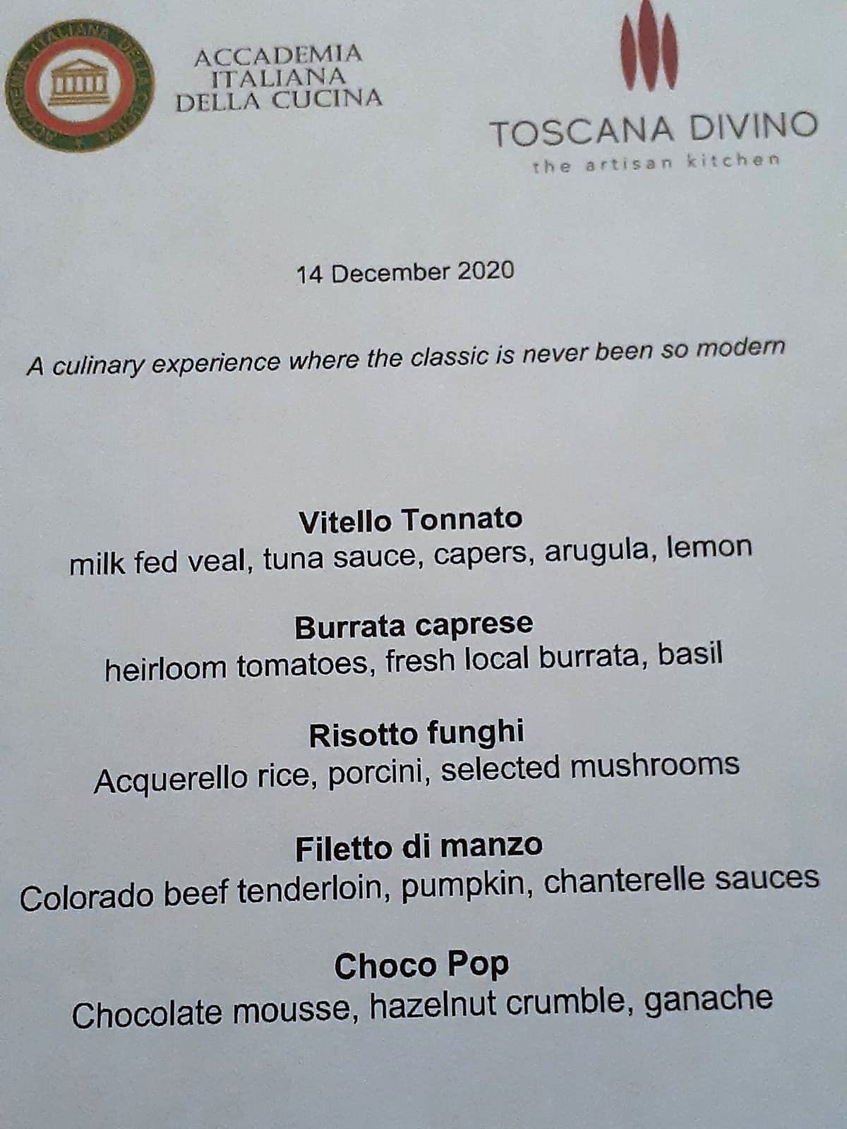 La Delegazione di Miami non ha rinunciato alla consueta e tradizionale cena per gli auguri di fine anno, organizzata presso il ristorante Toscana Divino, che si distingue sempre per l'eleganza dell'ambiente, il servizio impeccabile e la qualità del cibo. La serata ha avuto inizio con l'introduzione del Delegato Antonio Pianta e dello chef co-owner Andrea Marchesin che hanno esposto anche le difficoltà che la ristorazione sta attraversando in questo momento. Il locale offre un ampio spazio all'aperto, protetto da un'artistica copertura. Si è così potuto rispettare il distanziamento sociale. La serata si è svolta nel consueto clima amichevole.