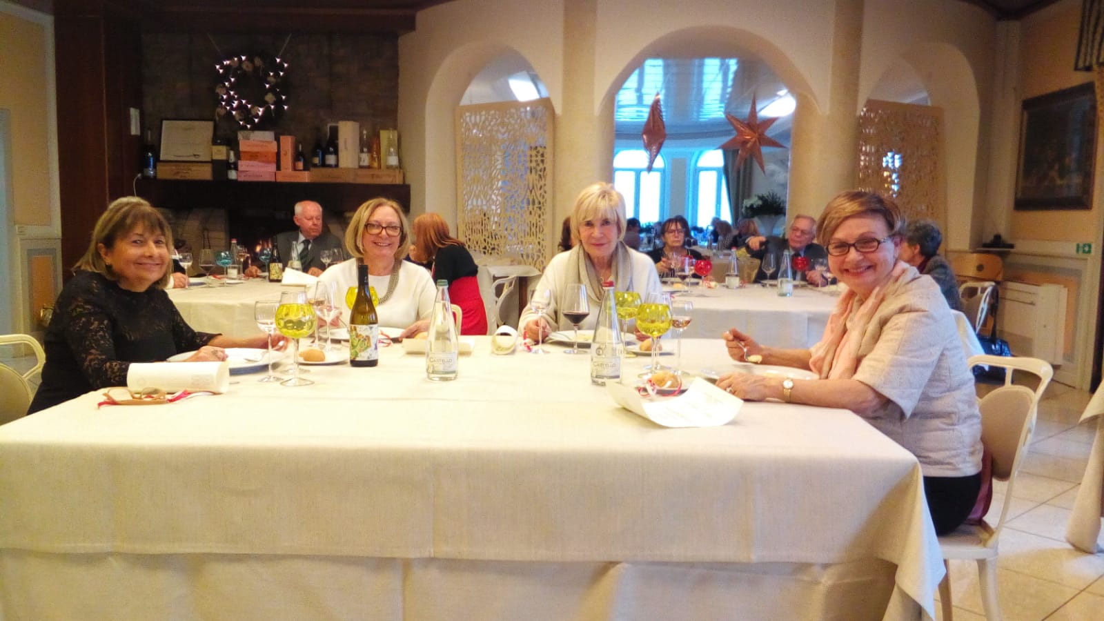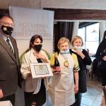 Bellissima riunione conviviale a Pavullo presso il Ristorante Albergo Corsini per la consegna dei Premi e per gli auguri. Nella colorata saletta riservata, preparata secondo le regole, la Delegazione si è ritrovata per gustare ottimo cibo, accompagnata dai racconti di poetici personaggi, densi di storia, cultura, qualità, passione, tradizione, che costituiscono i valori del territorio locale. Alla presenza dell’Assessore del Turismo e Promozione Turistica di Pavullo Cinzia Belloi sono stati consegnati i Premi assegnati nel 2020 ai presenti operatori del settore gastronomico: Diploma di Buona Cucina al Ristorante Albergo Corsini e Premio Massimo Alberini al Forno Tazzioli di Pavullo, Premio Dino Villani a Marisa Maria Tognarelli di Sestola, che si è distinta nella lavorazione artigianale del croccante. Foto 1. Assessore, Delegata Rosalba Caffo Dallari, Maria Pia, Francesca e Stella del Ristorante Albergo Corsini. Foto 2. Assessore, Delegata, Giuseppe Tazzioli del Forno Tazzioli. Foto 3. Assessore, Delegata, Marisa Tognarelli. Foto 4. Menu e piatti.