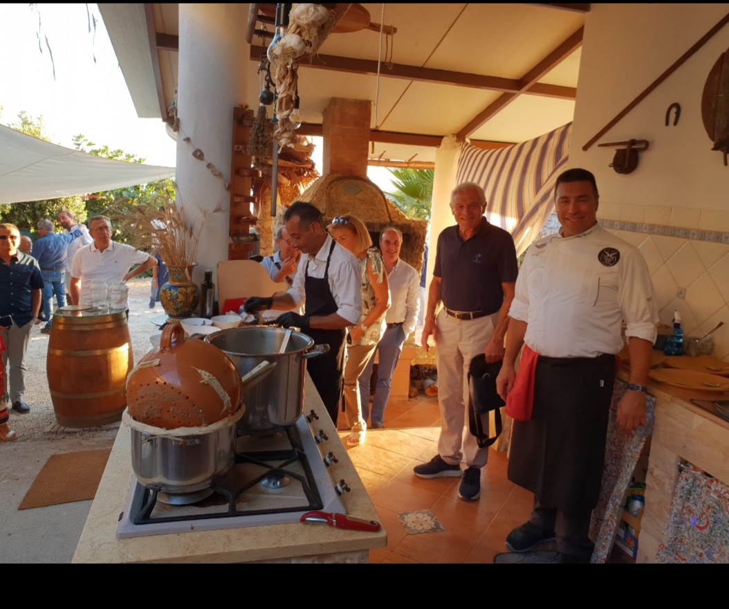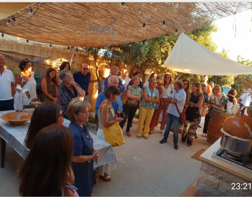 La Delegazione di Messina ha visitato l’Hostaria San Francesco a pochi passi dal sagrato della bellissima Chiesa barocca dedicata a San Francesco di Paola, situata sulle pendici del Capo di Milazzo con vista mozzafiato sul golfo. Una pioggia settembrina ha costretto la Delegazione a rinunciare alla programmata apparecchiatura all’aperto ma la delusione è stata compensata dall’eccellente qualità delle portate e dalla cortesia ed efficienza del servizio. Il Delegato (Foto 1) ha introdotto la conviviale congiuntamente al Simposiarca Consultore Tommaso Faranda. Unanime il gradimento delle preparazioni fra cui spiccava per qualità e sapore lo “Spaghetto quadrato al cacao con salsa di piacentinu ennese" (Foto 4), testimoniato dalla valutazione molto elevata e dal dibattito finale condotto dal Delegato e con numerosi interventi (Foto 3) concluso dalla consegna del guidoncino accademico alla chef-patronne Veronica e al patron Giovanni da parte di Trimarchi e Faranda (foto 4).
