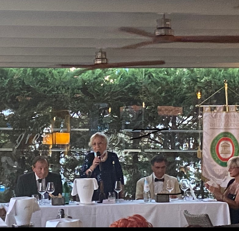 Partecipatissima Conviviale nella più stretta osservanza delle regole anti Covid presso il ristorante Il Gambero di Porto Sant’Elpidio. Il tema della stagionalità del pesce ha avuto piena rispondenza nel menu ove Piero De Santis (in foto 1 con il Delegato Fabio Torresi) ha proposto una carrellata dei pesci di stagione del medio Adriatico. Gli ospiti sono stati accolti con un calice accompagnato da stuzzichini a bordo piscina per poi riunirsi a tavola nell’accogliente sala interna. Ad un primo antipasto di panocchie al vapore è seguito un hamburgher di triglia e nasello per poi passare ai trucioli del Pastificio Carla Latini con dadolata di sgombro e mirepois di verdure. Ricchissima la grigliata mista e per finire zuppa inglese e passito. La serata è stata infarcita di vari momenti quali l’investitura ad Accademica di Luciana Cantarini (foto 2), il ricordo di Abdullani Makki consorte di Nadia Zacchi e dell’Accademico Walter Lattanzi con la consegna di un cadeaux alla famiglia. Molto interessante la relazione del dott.Tonino Giardini, Direttore nazionale settore pesca della Confagricoltura (a sinistra in foto 3, a destra Ugo Bellesi Delegato di Macerata) il quale ha dissertato sulle varie problematiche legate al settore, quali il fermo pesca, l'acquacoltura e la commercializzazione dei prodotti ittici.