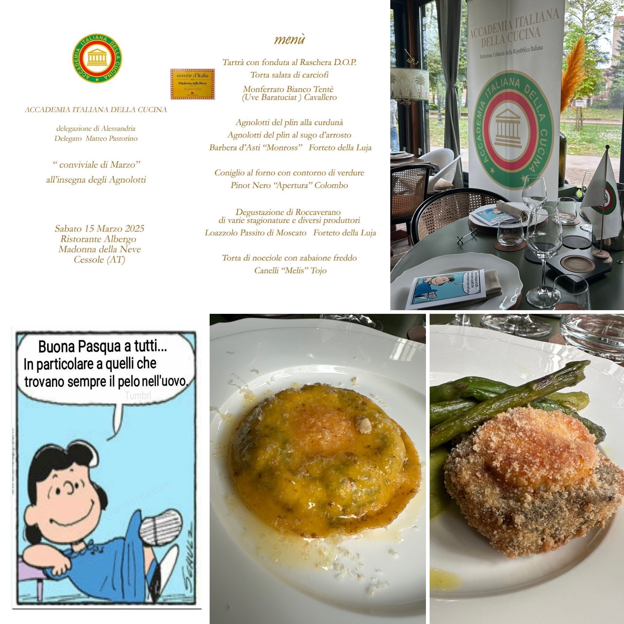La Delegazione di Alessandria si è riunita per la tradizionale conviviale di Pasqua presso l’accogliente *Osteria Billis* di Tortona, in un’atmosfera calda e autentica che ha saputo esprimere appieno lo spirito conviviale dell’evento. Situata di fronte alla stazione ferroviaria, l’Osteria Billis è stata fondata nel 2018 dai fratelli gemelli Alessandro e Filippo Billi. Alessandro, dopo esperienze culinarie in Giappone e Vietnam, e Filippo, con un background in architettura e moda, hanno deciso di tornare alle radici familiari e trasformare un ex bar in un punto di riferimento gastronomico. Nel corso degli anni, l’osteria ha evoluto la sua proposta culinaria, passando da influenze internazionali a una cucina profondamente radicata nel territorio piemontese. Durante il convivio, gli Accademici hanno potuto apprezzare un percorso di sapori autentici, in equilibrio tra classicità e creatività, dove ogni portata ha raccontato una storia di territorio, famiglia e passione. L’atmosfera conviviale è stata impreziosita dagli auguri pasquali scambiati tra i presenti, in un momento di condivisione e appartenenza che rinnova i valori dell’Accademia.