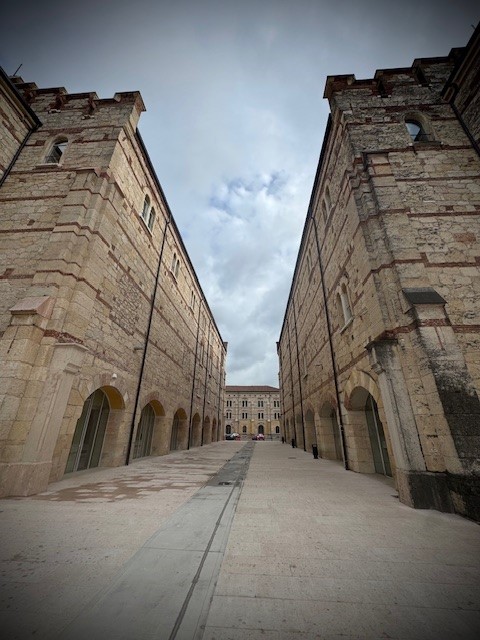La Delegazione, grazie alla collaborazione e alla piacevole amicizia instaurata con la dott.ssa Daniela Brunelli, Presidente della Letteraria di Verona, ha avuto modo di visitare il Polo universitario di Santa Marta. Il sito si trova all’interno di un vasto complesso militare ottocentesco di 25.000 mq, un tempo destinato alla produzione di pane e alla conservazione di cereali per le truppe austriache. Costruito tra il 1863 e il 1865, fu uno degli impianti logistici più imponenti della piazzaforte austriaca di Verona. Dopo l’annessione al Regno d’Italia, lo stabilimento rimase in funzione per oltre un secolo, adattandosi a nuove destinazioni fino agli anni Novanta. Oggi, grazie a un importante intervento di restauro promosso dall’Ateneo, il complesso ospita i dipartimenti economico-giuridici e la biblioteca economica. Dopo una passeggiata nel quartiere Veronetta, il gruppo di Accademici è stato accolto dal suggestivo Cafè Carducci. Riconosciuto come locale storico d’Italia, vanta quasi un secolo di attività ed è gestito da quattro generazioni della famiglia Bianconi. Nato nel 1928 come Osteria Carducci, è oggi guidato da Pier Stefano Bianconi. Il locale, con arredi d’epoca, luci calde e una cucina a vista affidata allo chef Gianluca Vignati, propone piatti raffinati ispirati alla tradizione e rivisitati. Una cucina raffinata ma concreta, con materie prime di altissima qualità In sala, la presenza attenta di Benedetta è un vero fiore all’occhiello.