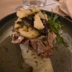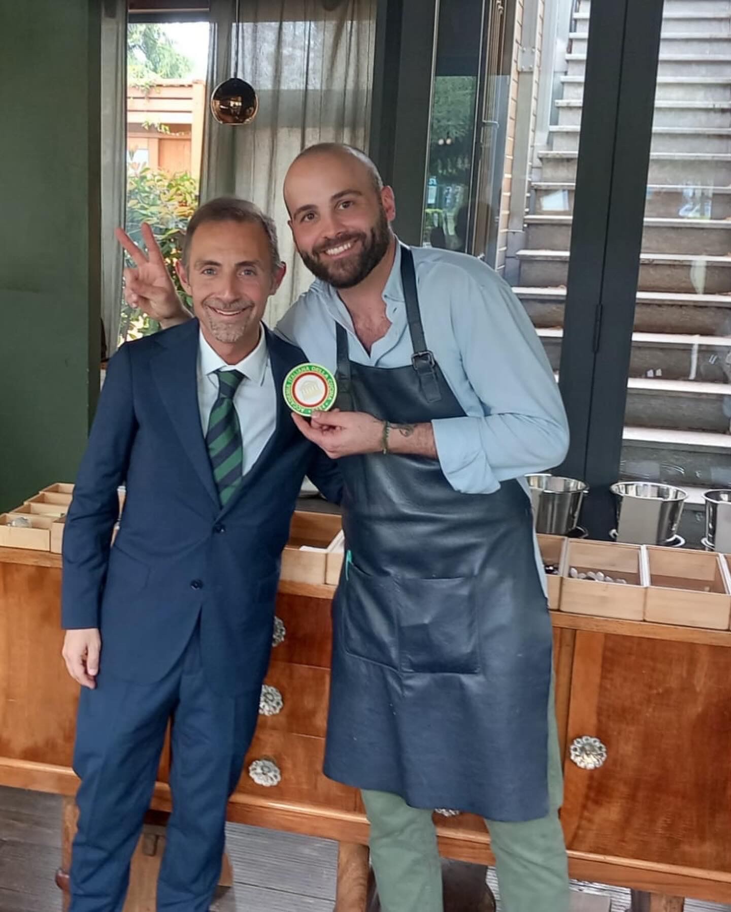L’eleganza dell’accoglienza rivela l’anima di Locatelli, che fu Il Verdi con i piatti degli anni ’80. Oggi, libero da panne e strutture, si esprime “come un ristorante di casa dove riscoprire sapori, origini dei prodotti, semplicità”, racconta lo chef Federico Trobbiani. “Sono tante le situazioni che cambiano la vita”, continua Andrea Locatelli con gli occhi che interpretano la sua Milano che ha tarpato le ali durante la nuova apertura a ridosso del lockdown per riconvertirsi in un luogo intimo dal profumo della tradizione che accompagna tante storie e disegna i sogni del presente. Accolti dal mondeghilo; a tavola regna il riuso, il dettaglio e la sapienza: una focaccia con farina di scarto di verdure e burro al porro; a seguire nuovi piatti di sapori e contrasti, acidità e dolcezze, creati per la Delegazione e poi pubblicati in carta. Un insolito fluttuare al palato per il finale con un infuso al gin. Ringraziamenti all’Accademico Paolo Sacchi Nemours, che l’ha fatto riscoprire.