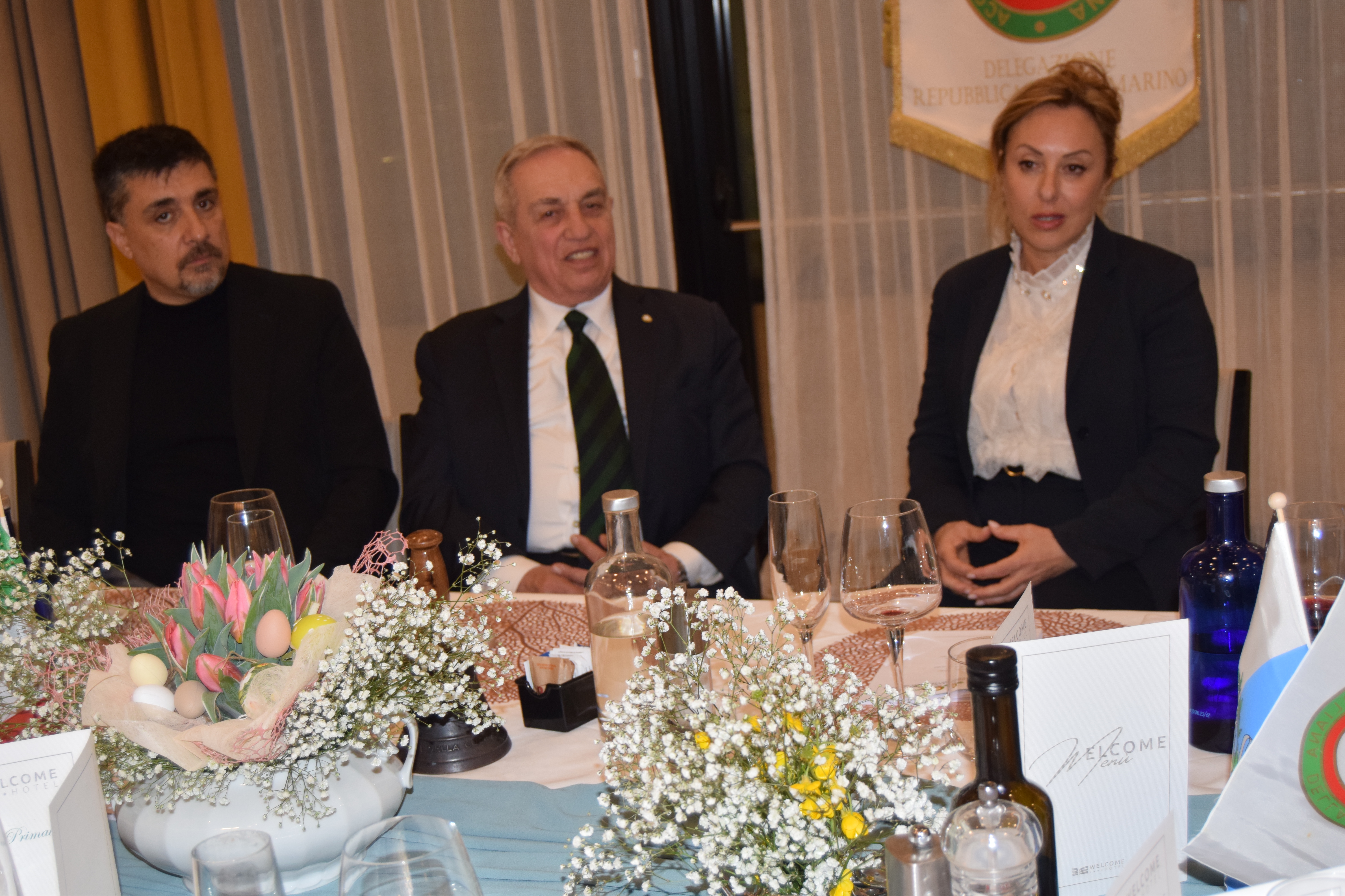 Il ristorante "Welcome Hotel" a Dogana di San Marino ha accolti gli Accademici in un ambiente elegante e raffinato per apprezzare un menù gustoso, fresco e stagionale creato dallo chef Ba Cheik. I piatti, semplici ma ricchi di sapore, hanno esaltato gli ortaggi di stagione come asparagi, piselli e carciofi, protagonisti indiscussi che hanno caratterizzato l’eccellente menù: un amuse-bouche iniziale, seguito da un antipasto con cestino di parmigiano, asparagi, spuma di stracchino e mandorle tostate. Il primo piatto è stato costituito da tortelloni ripieni di carciofi e patate, con fonduta di pecorino e guanciale croccante. Come secondo è stata proposta una tagliata di anatra servita su crema di piselli, accompagnata da un carciofo alla romana, risultata la più apprezzata per l’eccellente equilibrio di sapori. Il dolce finale è stato una torta di mele con zabaione caldo. In accompagnamento, i vini della Cantina di San Marino: Titano Brut e Brugneto. La serata si è conclusa in un’atmosfera conviviale, con auguri di lieto rientro per tutti.