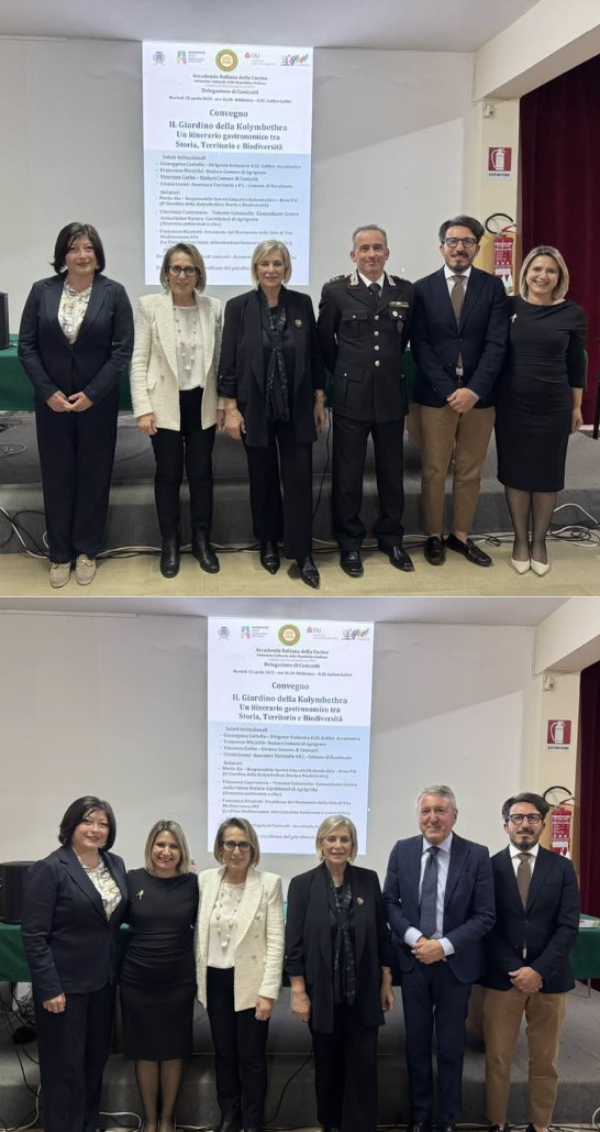 La Delegazione di Canicattì, con il patrocinio gratuito del Comune di Agrigento, ha organizzato presso la biblioteca dell’Istituto Tecnico Galilei il convegno “Il giardino della Kolymbethra: un itinerario gastronomico tra storia, territorio e biodiversità”, nell’ambito di Agrigento Capitale Italiana della Cultura 2025. Ha moderato l’incontro la Delegata Rosa Cartella, con il saluto della Preside e Accademica Giuseppina Cartella. Sono intervenuti: il Sindaco di Agrigento Francesco Miccichè, l’Assessore Gioacchino Alfano e la Presidente dell’Ordine degli Agronomi Maria Giovanna Mangione. Tra i relatori, Maria Ala, responsabile educativa del Giardino della Kolymbethra e del FAI, ha illustrato la ricchezza storica e botanica del sito. Il Ten. Col. Vincenzo Castronovo, comandante dell’Unità dei Carabinieri Centro Anticrimine Natura, ha posto l’accento sul legame tra tutela ambientale e sicurezza alimentare. Il Presidente del Movimento dello Stile di Vita Mediterraneo APS ha evidenziato il valore della Dieta Mediterranea come modello di salute e sostenibilità. Interessante anche l’intervento di Enzo Sardo, Presidente del Movimento Cristiano dei Lavoratori e scrittore, che ha sottolineato l’importanza delle scelte di consumo consapevoli per la valorizzazione del territorio e per educare ad una sana alimentazione. Un’occasione preziosa per riscoprire il Giardino della Kolymbethra, emblema dell’incontro armonioso tra storia, natura e sapori autentici.