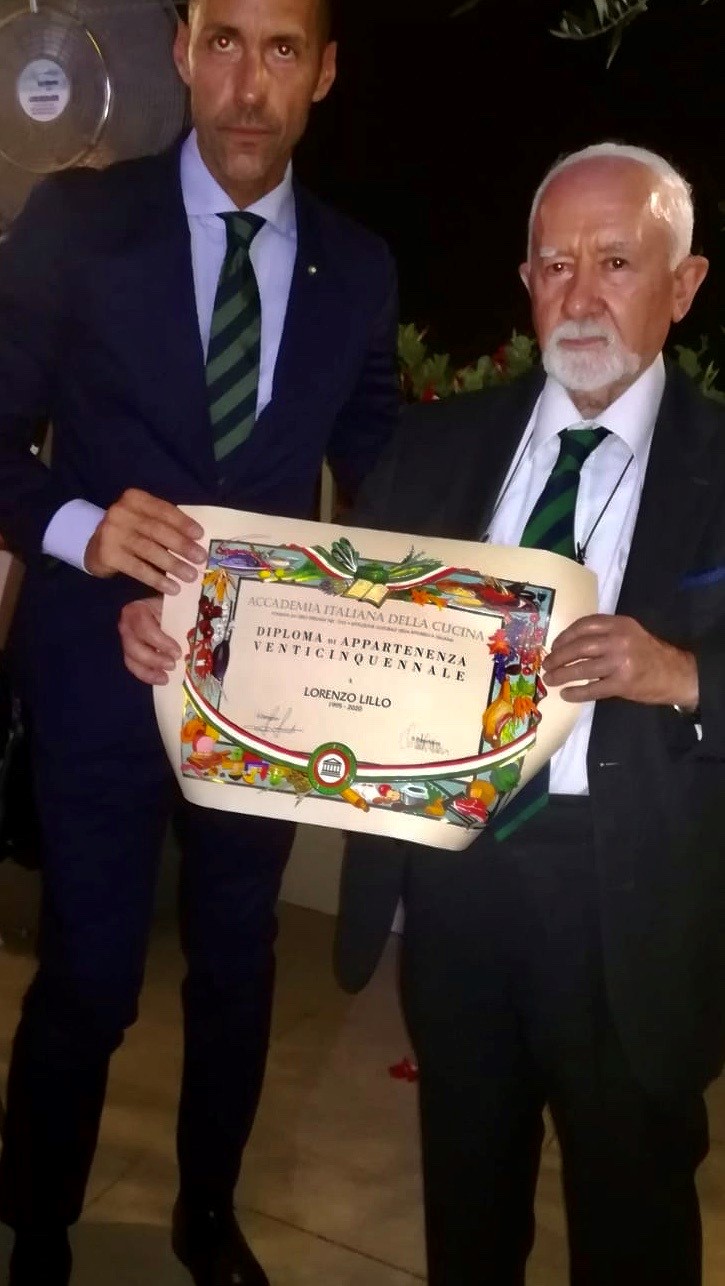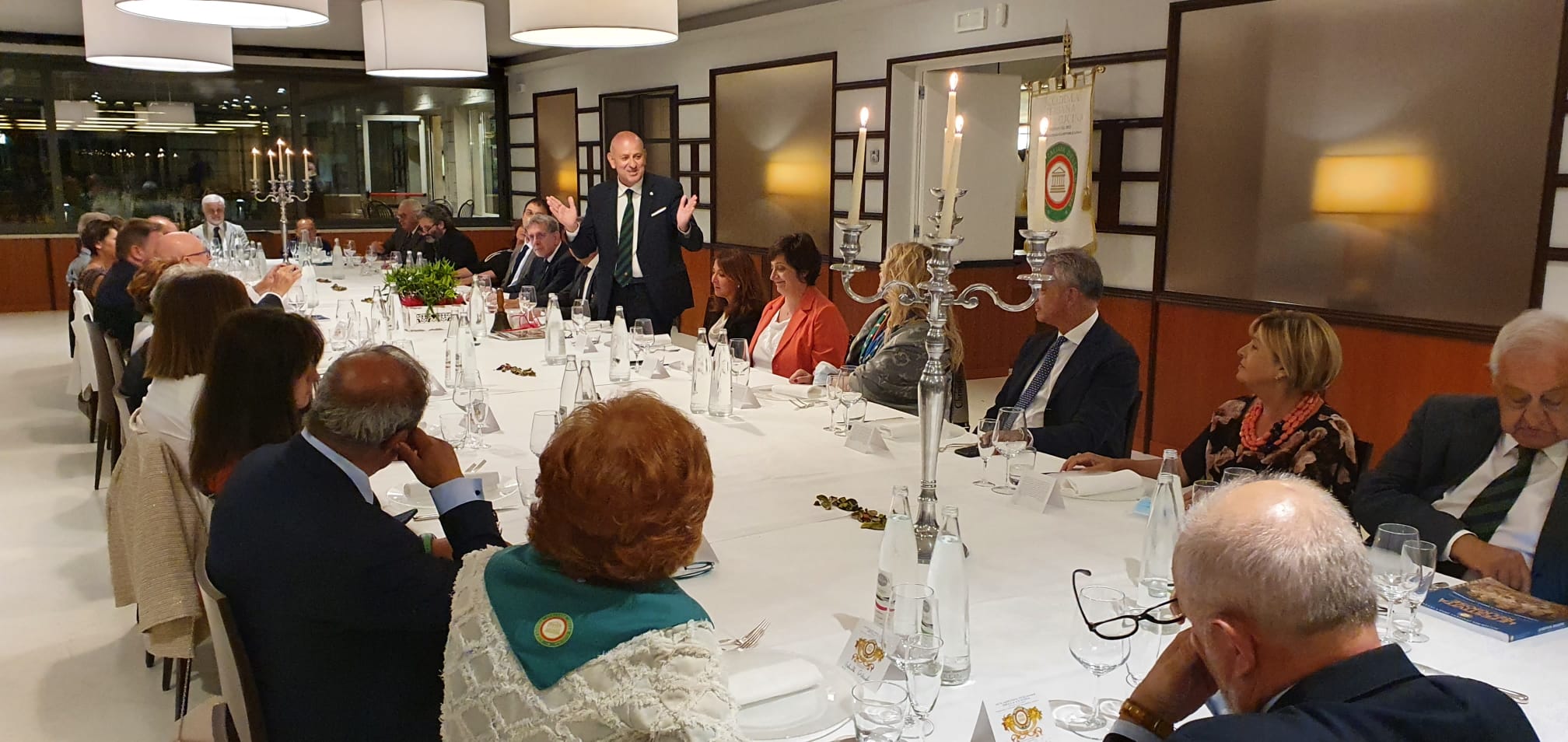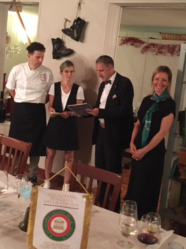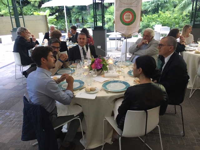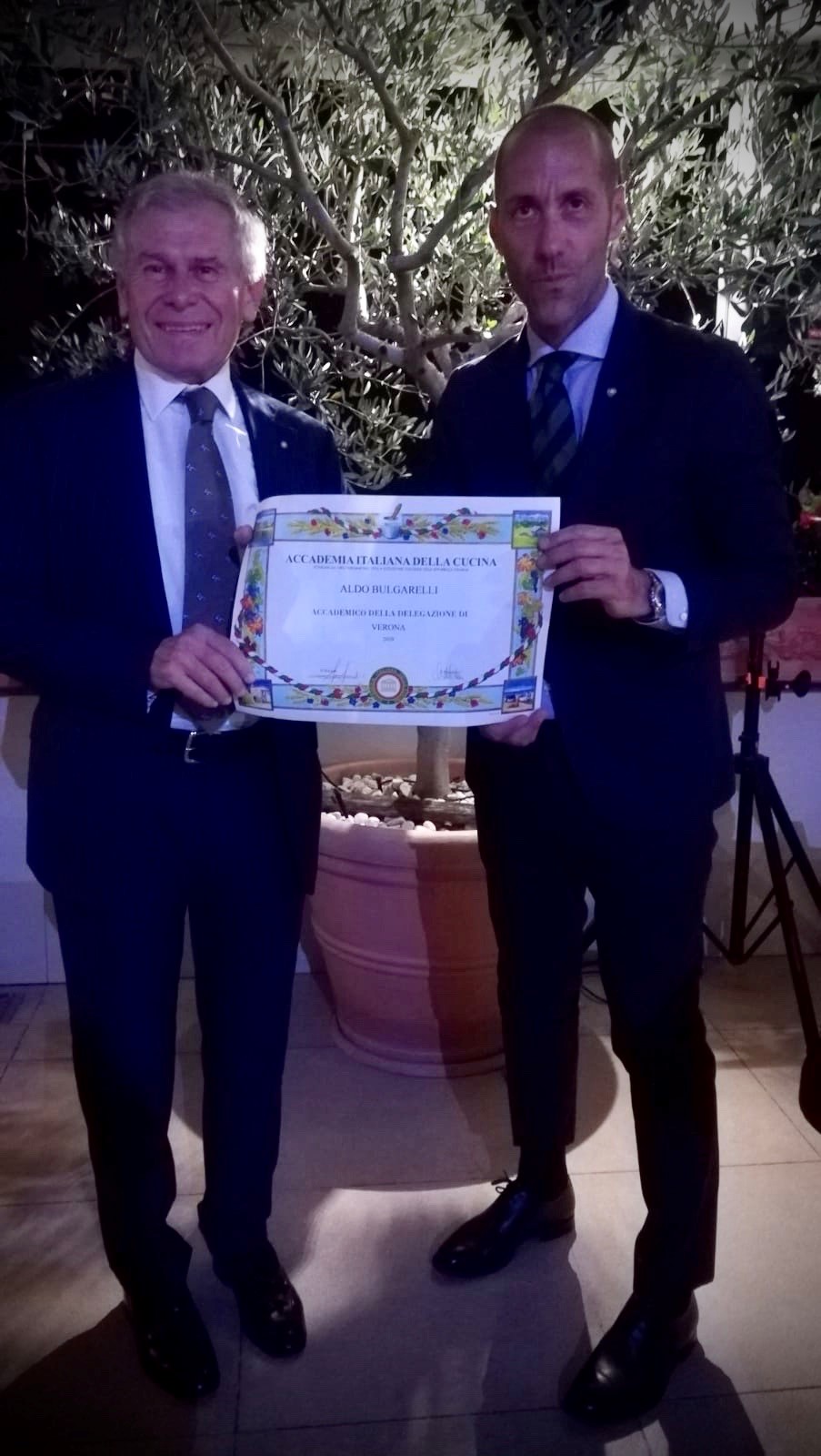 Solo un angolo privilegiato, di uno dei luoghi più romantici d'italia, poteva ospitare un convivio così carico di momenti importantissimi. Sospesi a trenta metri da terra, affascinati dalle bellezze della città antica, coccolati e rapiti dai piatti del cuoco abruzzese Speca del ristorante "Due Torri", gli Accademici di Verona hanno assistito alla celebrazione emozionante per i 25 anni di appartenenza dell'Accademico Lorenzo Lillo (in foto 1 con il Delegato Fabrizio Farinati), figura di grande spessore accademico, e alla consegna del materiale associativo al neo Accademico Aldo Bulgarelli (foto 2) che saprà, con la sua forte passione, valorizzare ancor più il lavoro svolto dalla Delegazione. Il brindisi finale, ad augurare il ritorno alla piena attività.