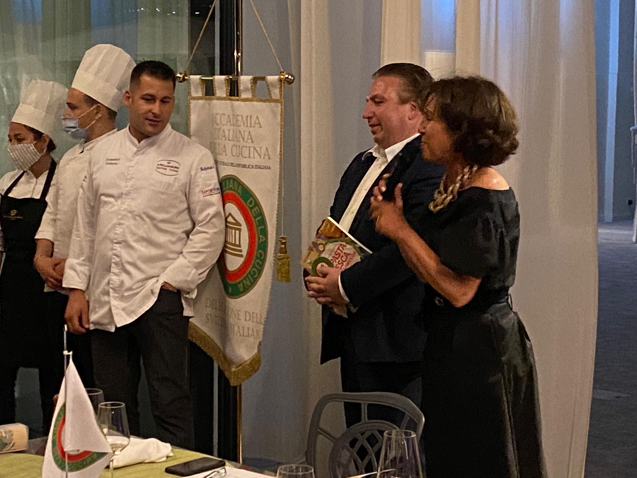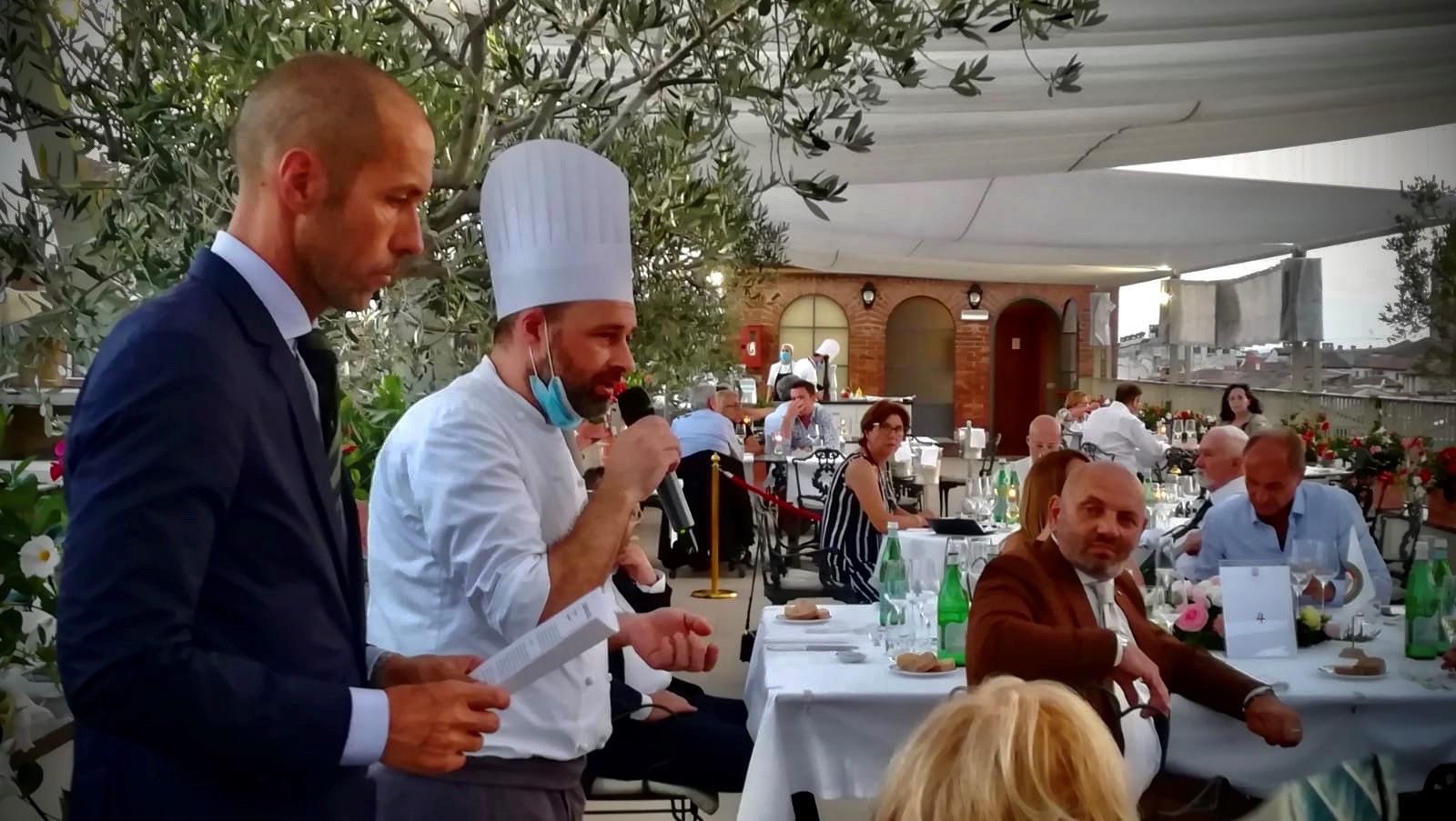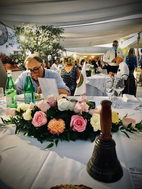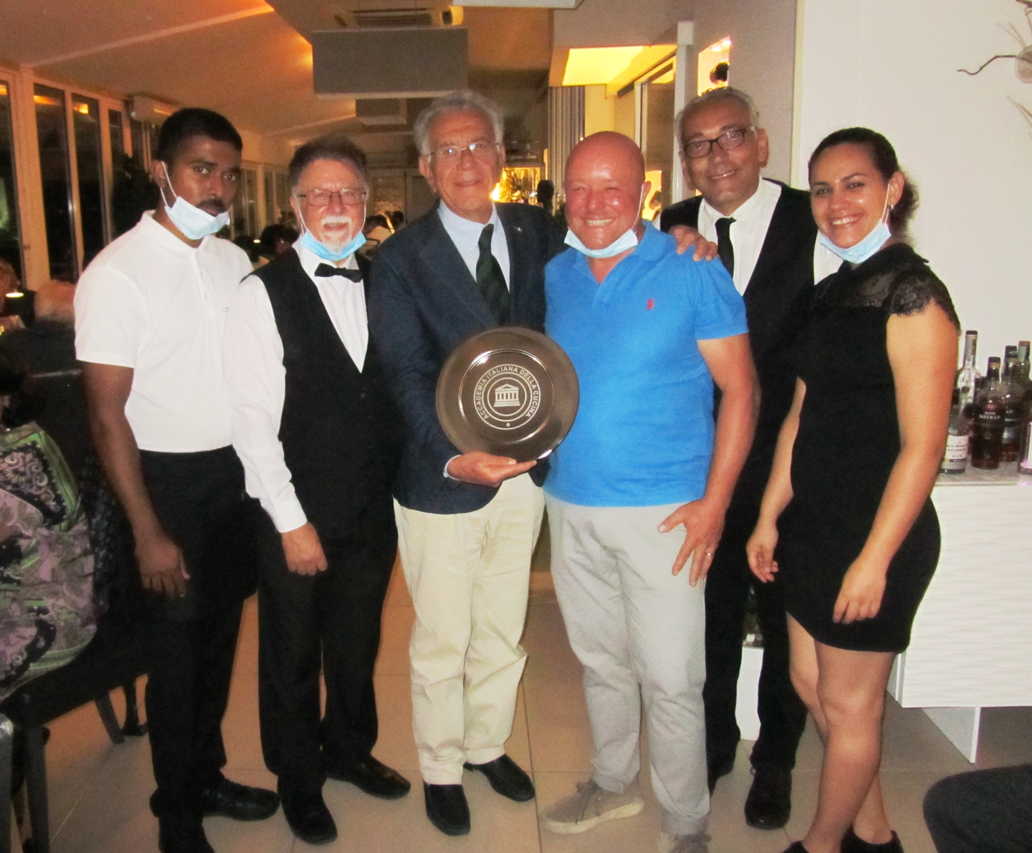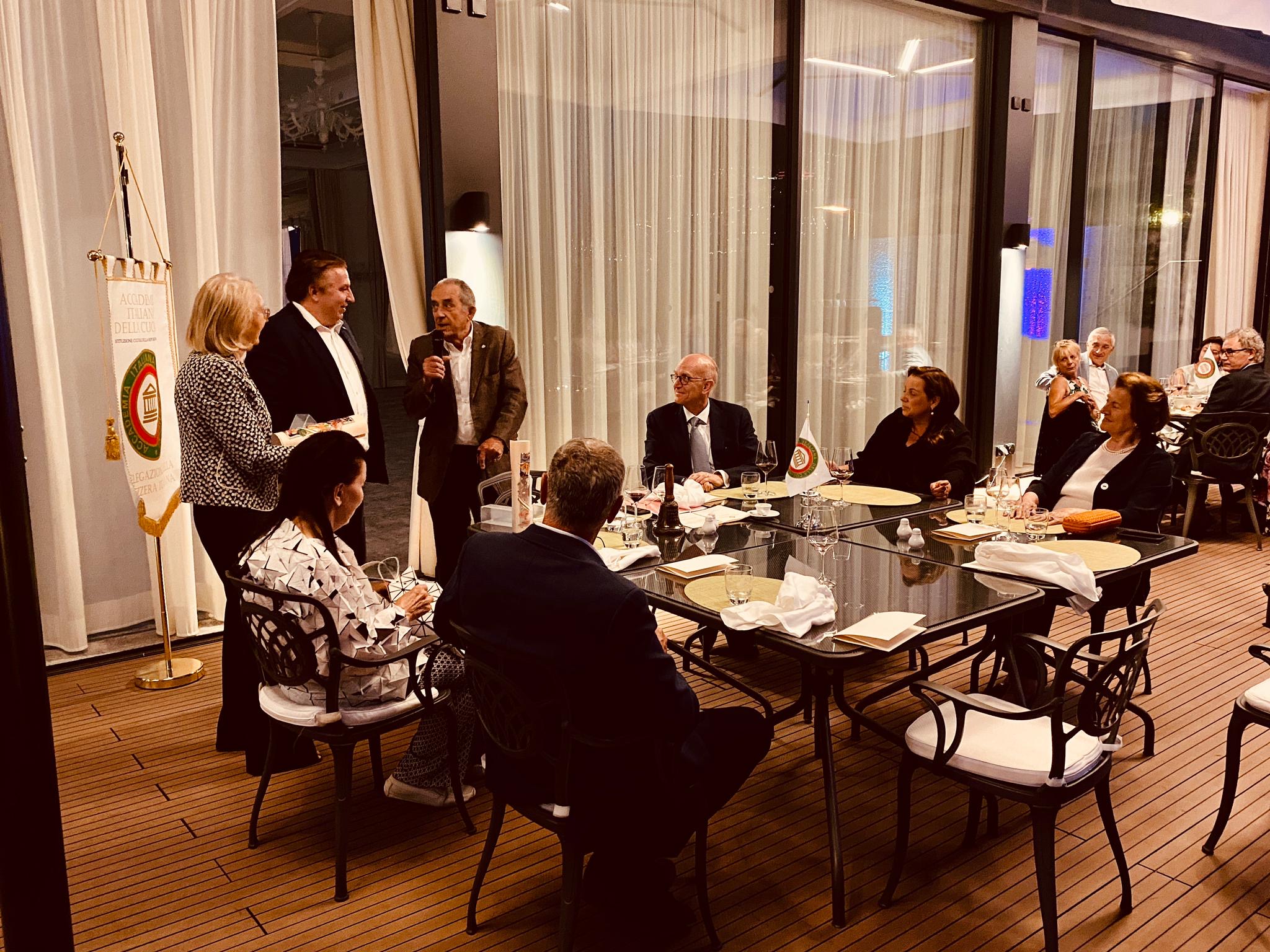Nella scenografica terrazza del Monte Carlo Country Club si è svolta la prima cena dopo la chiusura imposta dalla situazione sanitaria. Organizzata con capacità e rapidità dalla Vice Delegata Raffaella Stimamiglio (foto 1 e 2), una ventina di Accademici si sono rivisti per gustare il menu elaborato dallo chef Saverio Gullace, cuoco appassionato e innovativo ma anche legato alla tradizione. Come richiedeva il luogo, compreso fara il mare e le luci del Principato, il tema seguito è stato di impronta mediterranea. Il menu è stato molto apprezzato dagli Accademici e il servizio ai tavoli molto attento e rapido. La serata si è dipanata fra riflessioni gradevoli e stimolanti a testimonanianza del piacere di incontrarsi dopo così tanti mesi.