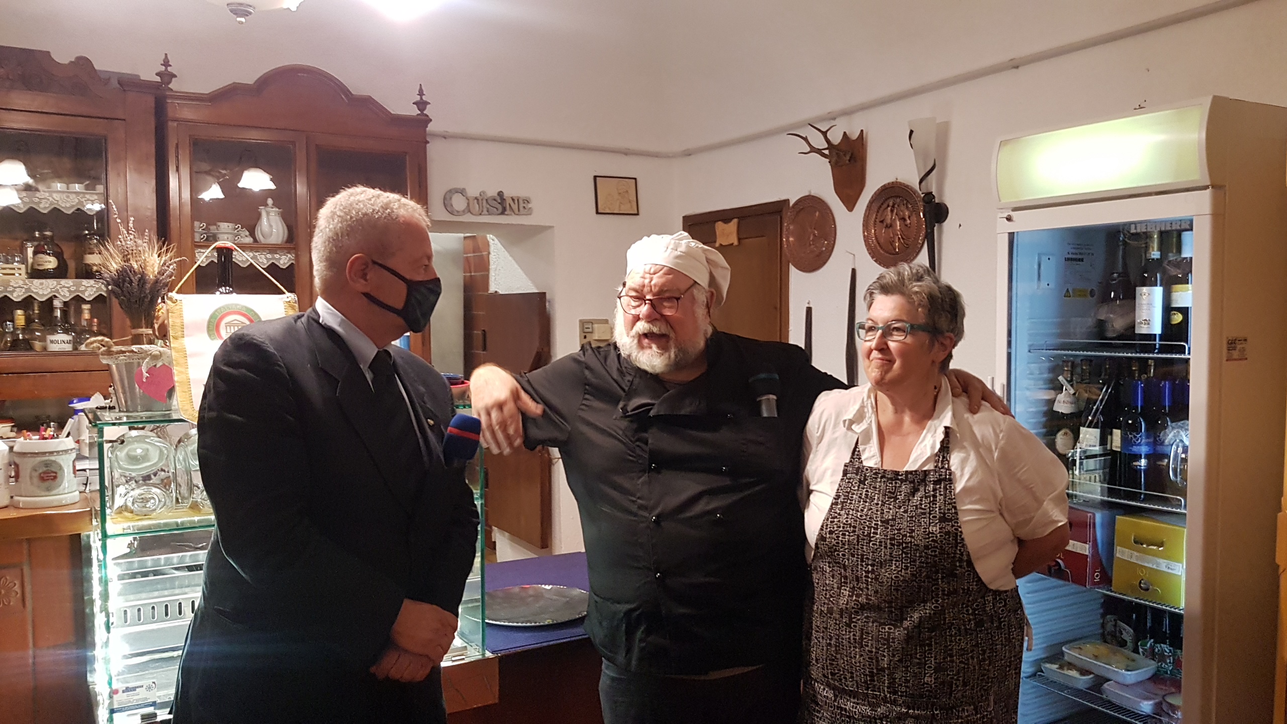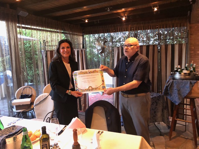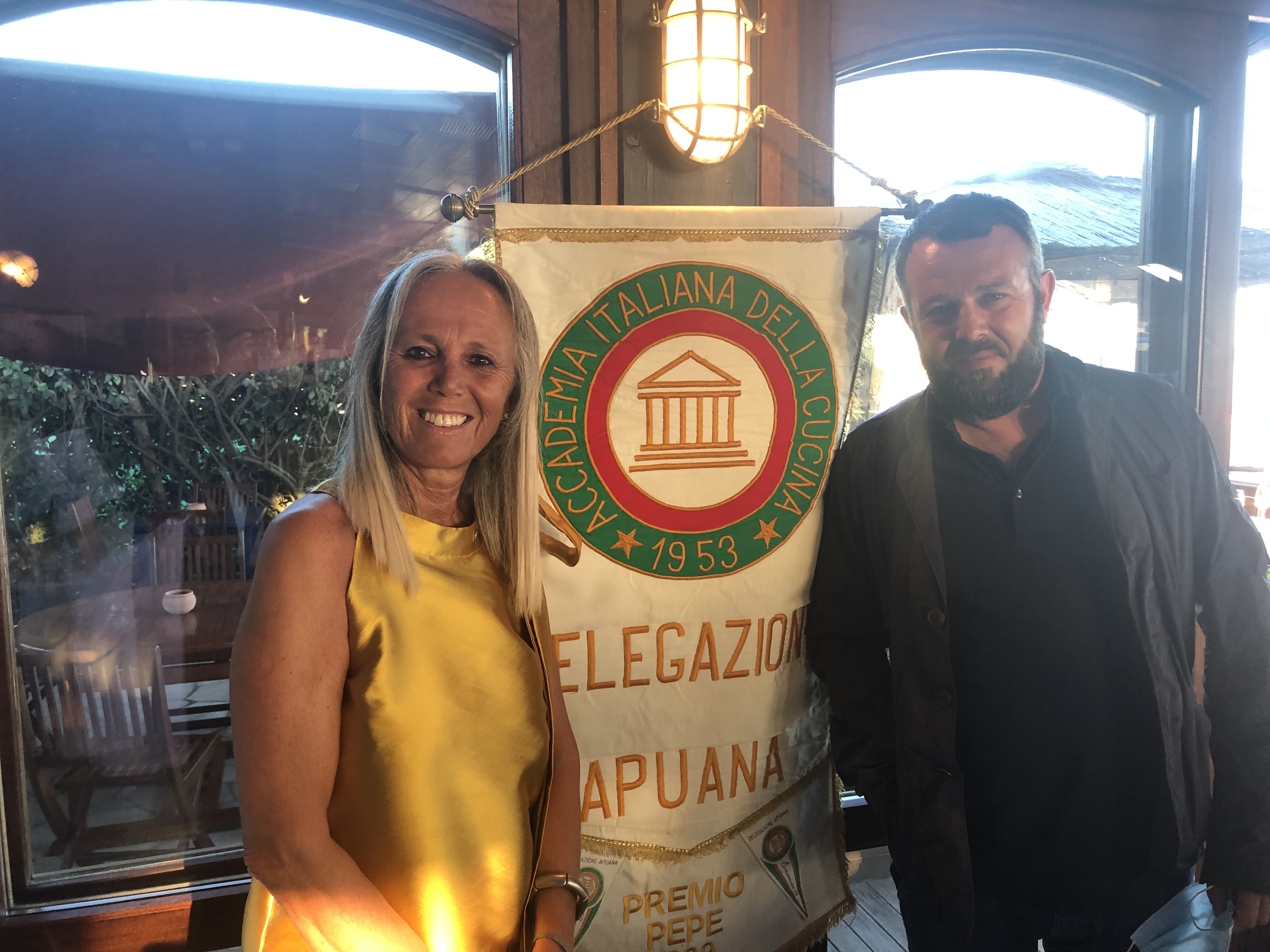 La Delegazione Apuana ha ripreso la propria attività con una serata al ristorante "Palmo Mare", ai Ronchi, nel Comune di Massa, nel corso della quale Giuseppe Pieretti Presidente di Confcommercio della Provincia di Massa Carrara (in foto 1 con la Delegata Beatrice Vannini), ha illustrato la situazione di grave crisi, con particolare riferimento agli imprenditori titolari di bar e ristoranti, settore da sempre sostenuto dagli Accademici. Il relato ha sottolineato che, pur non abbassando la guardia, con le dovute cautele, è vitale riprendere le abitudini sociali e ha denunciato il danno psicologico, legato alla paura, che frena la ripresa, e la mancanza della socialità. Durante la serata, molto apprezzata dai numerosi Accademici e ospiti, la Delegata ha consegnato le insegne accademiche di nuovo socio a Fabrizio Volpi (foto 2). Al termine della piacevole riunione conviviale, il titolare del ristorante, Enzo Sermattei, ha ricevuto una vetrofania dell'Accademia.