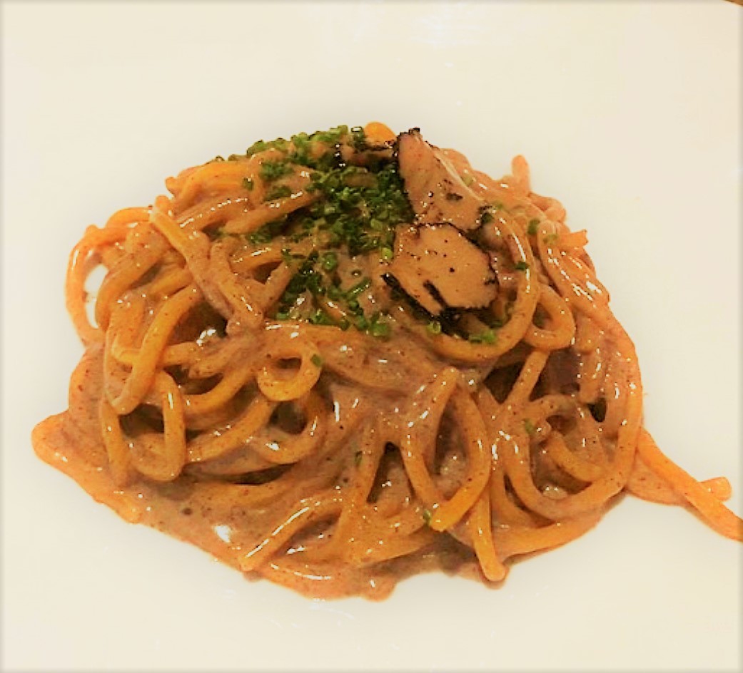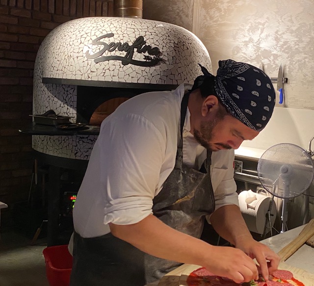 La Delegazione di Tel Aviv in formato ridotto - per le restrizioni dovute all'emergenza sanitaria Covid-19 - si è ritrovata al ristorante Serafina TLV per la consegna deil materiale associativo e degli attestati di iscrizione ai due nuovi Accademici Claudio Grego e Roberto Della Rocca. Foto 1 (da sinistra). Neo Accademico Claudio Grego, Delegata Cinzia Klein, Neo Accademico Roberto Della Rocca. Foto 2. La Delegata Cinzia Klein. Foto 3. Il pizzaiolo del ristorante "Serafina TLV". Foto 4. Spaghetti ai tartufi.