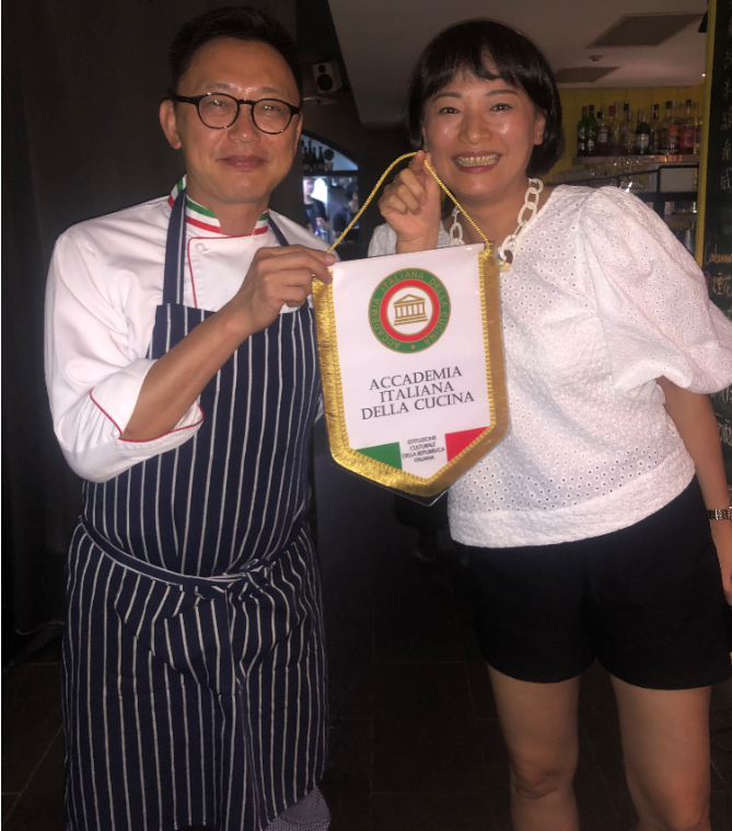 Il 1° luglio la Legazione di Taiwan ha festeggiato la sua trasformazione a Delegazione organizzando una riunione conviviale presso il ristorante "Solo Pasta" di Taipei. Alla cena hanno partecipato gli Accademici e altri selezionati professionisti interessati alla nostra Associazione, nonché l'ufficiale Consolare dott. Raniero Demuri dell' Ufficio Italiano di Promozione Economica, Commerciale e Culturale di Taipei. Durante l'evento l'Accademia Italiana della Cucina è stata presentata agli invitati dal Delegato Giuseppe Izzo (in foto 2 durante il suo discorso; Photo credit: Mirrormedia Ming Yi Lee) che si è soffermato sull'importanza della stessa e sui suoi fini. Media locali hanno partecipato all'evento e pubblicheranno un articolo dedicato ad esso. Prima della cena sono stati consegnati i kit dell'Accademia ai nuovi Accademici (foto 3; Photo credit: Mirrormedia Ming Yi Lee), la vetrofania e il guidoncino al ristorante (foto 4) e, da parte dell'Ufficio Italiano di Promozione Economica, Commerciale e Culturale di Taipei, un premio speciale di riconoscimento al ristorante. Il menu della cena è stato pensato assieme allo chef e proprietario J. Ping e, per offrire un'esperienza culinaria attraverso ricercate specialità di diverse regioni italiane.