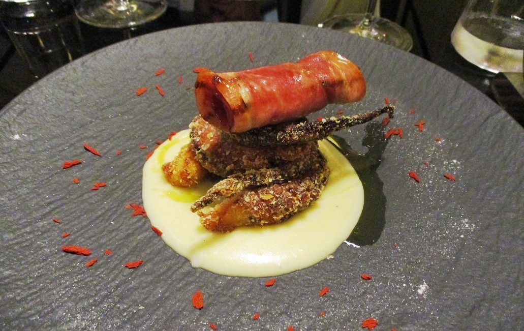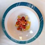 La Delegazione di Siracusa ha ripreso le attività visitando "Fratelli Restaurant", un nuovo ristorante in Ortigia a Siracusa. Il Delegato Angelo Tamburini (foto 1) ha presentato e poi distribuito il nuovo volume della Biblioteca di Cultura Gastronomica dell'Accademia "Le festività religiose nella cucina della tradizione regionale" - una completa riscrittura dell’analoga opera pubblicata nel 2010 grazie ai contributi dei Centri Studi Territoriali - sulla interessante tematica delle tradizioni gastronomiche delle festività, disponibile altresì in libreria. A seguire, il Simposiarca Gabriele Carnemolla ha presentato il menu. Infine la consegna del guidoncino allo chef Dario Tartaglia e al proprietario Cutrufo da parte del Delegato Angelo Tamburini. Foto 2. Accademici e ospiti. Foto 3. Delegato Tamburini, chef Tartaglia, proprietario Cutrufo, Simposiarca Carnemolla. Foto 4. Dal menu, polpo e bacon.