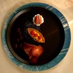 La Delegazione di Rovereto si è incontrata nuovamente dopo il convivio del "ritorno" del 18 giugno scorso. Questa volta gli Accademici si sono ritrovati presso il ristorante "Veranda" dell' Hotel Du Lac et Du Parc, a Riva del Garda. In foto 1. Il tavolo con il Delegato, i Simposiarchi Luigi Masato e Claudio Malfer, il prof. Attilio Scienza relatore sul tema: "La vigna di Leonardo: cronaca di una scoperta", e il dott. Gabriele Furletti, titolare dell'omonima cantina a Riva del Garda, che ha presentato due vini bianchi. Foto 2. Il Delegato con i due relatori. Foto 3. Piovra cotta a bassa temperatura con code di gamberoni all'olio "Uliva" e macedonia di frutta e verdura. Foto 4. Trilogia di lamponi.