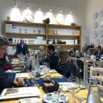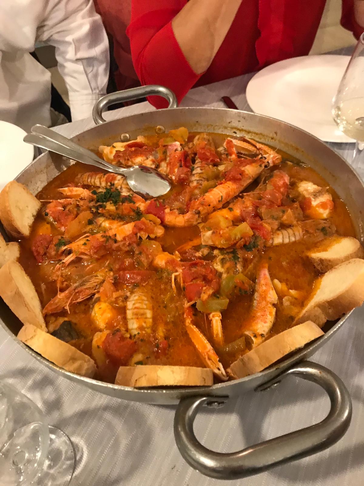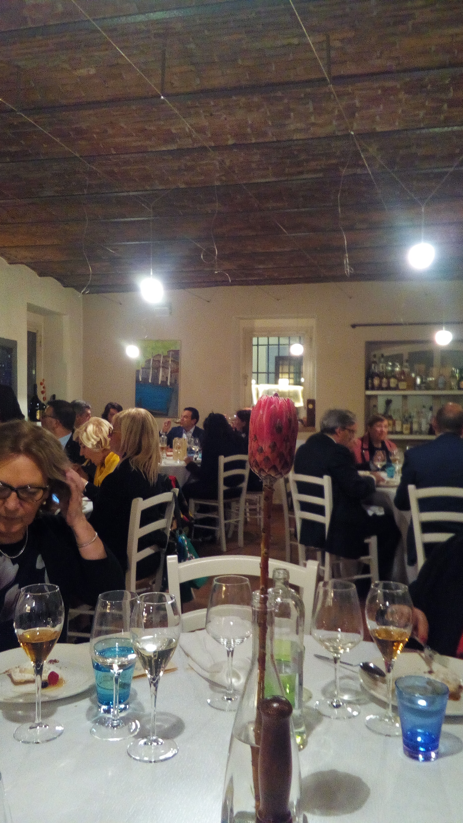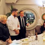 Graditissima e partecipata conviviale "Da Lorè", storica trattoria di Porto San Giorgio, per gustare il piatto tipico (DE.CO.) della città: il brodetto. La stagionalità ha determinato le 13 specie ittiche utilizzate per la pietanza servita con polentone o pane bruscato (foto 4). Il Delegato Fabio Torresi ha accolto nella Delegazione Maura Raccichini (foto 1) e Stefania Budassi (foto 2) investendole delle insegne accademiche. A chiusura della serata, il Delegato ha ringraziato la cuoca Maria Zazzetta che da 49 anni guida la cucina sotto la direzione di Edi Traini e Gabriele Vitali della cantina Casale Vitali per i vini in abbinamento (foto 3).