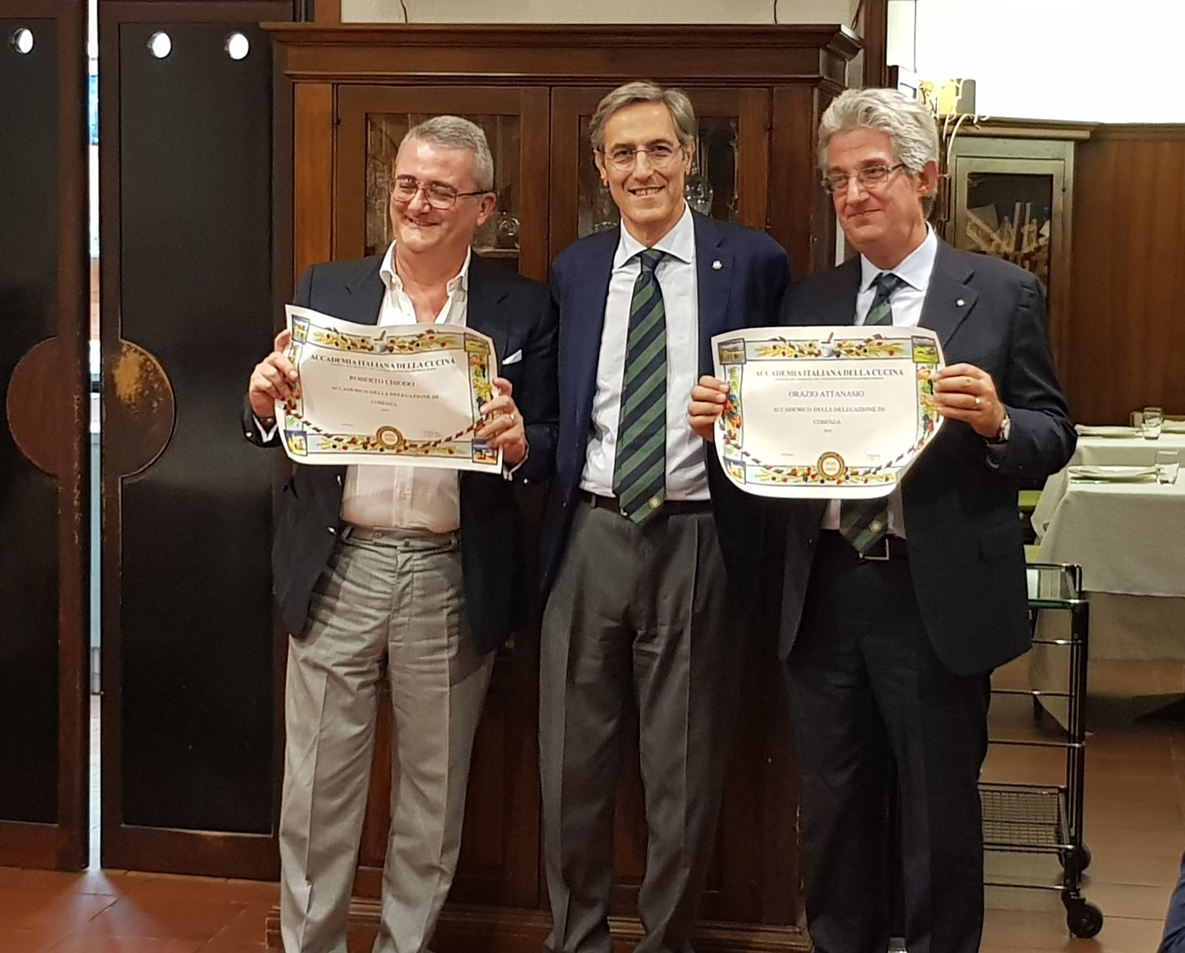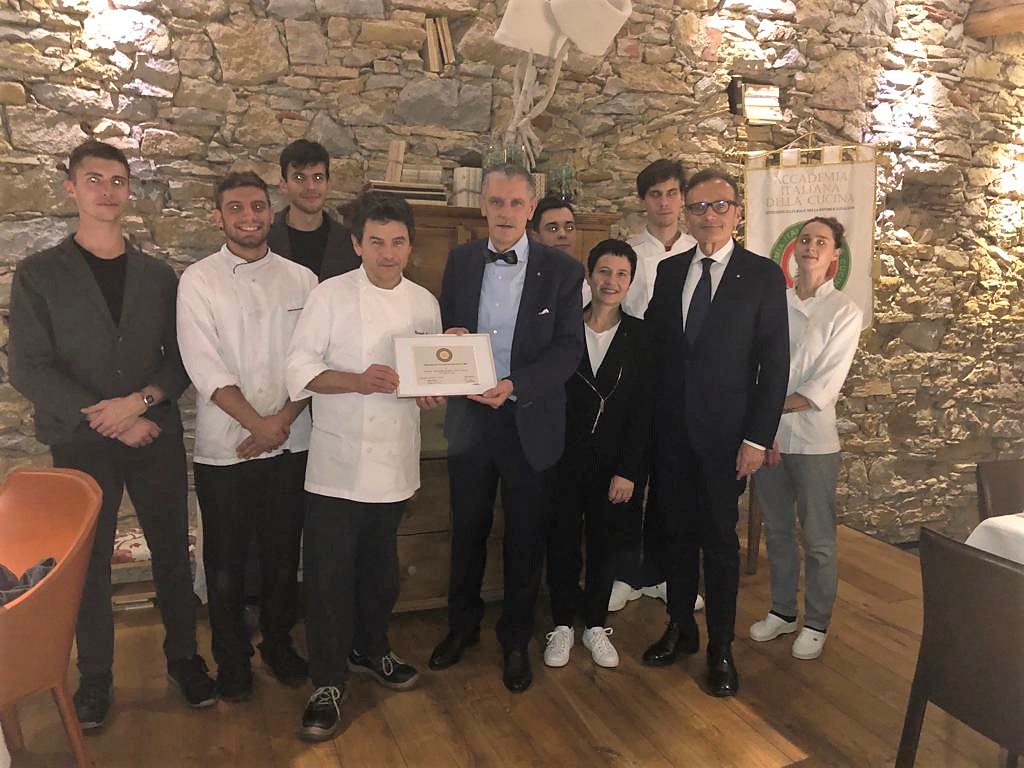 Il Delegato Manuel Macrì ha consegnato il "Diploma di Cucina Eccellente" a Gianni e Giulio Vaccaro, assegnato per l'anno 2019 al Ristorante Ippogrifo. Il prestigioso ed esclusivo premio, assegnato per la prima volta nel territorio della Delegazione, rappresenta il riconoscimento per la cura, l'impegno e la costanza ultratrentennale profusa nel proporre un'eccellente cucina tradizionale, nel rispetto della materia prima e della stagionalità. Alla cerimonia ha partecipato la Consulta della Delegazione: Stefano Cazzulo, Alfredo Guido, Guglielmo Camera e Laura Gambardella.