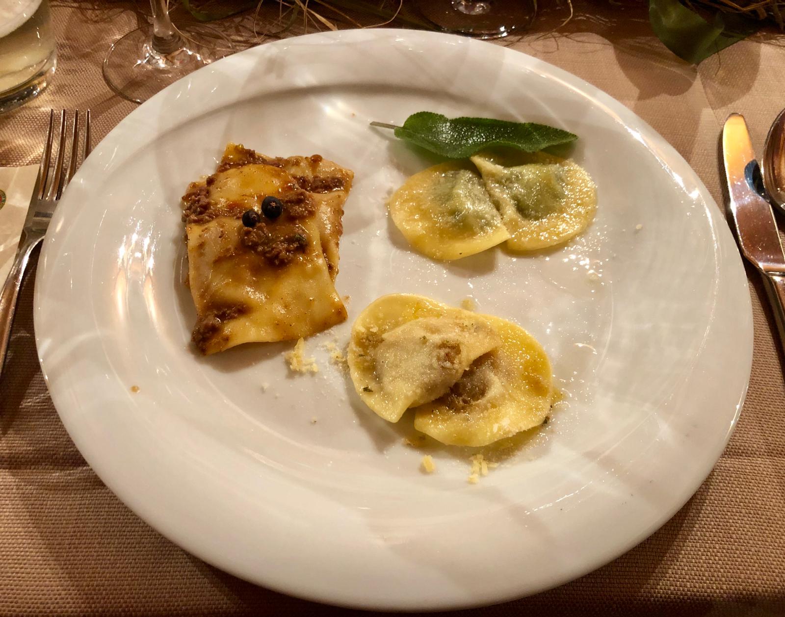 La Delegazione di Cortina d'Ampezzo ha organizzato la cena ecumenica 2019 sul tema "La pasta fresca, ripiena e gli gnocchi nella cucina della tradizione regionale" presso il Ristorante "Rio Gere". Grazie ad una approfondita ricerca nella tradizione ampezzana, le Simposiarche Silvana Savaris Grasselli, membro del CST Veneto, e Monica Sardonini Hirschstein hanno messo a punto un menu che il cuoco Nicola Bellodis ha interpretato con maestria. Ospite della serata l'Accademico onorario Giampiero Rorato, che ha introdotto il tema con interessanti cenni storici. Foto 1. La Delegata Monica De Mattia e l'Accademico onorario Giampiero Rorato. Foto 2. Lesagnetes con le erbe dell'orto. Foto 3. Casunziei con s'ciopetis, patate e speck, selvaggina al ginepro. Foto 4. Rufioi con crauti.