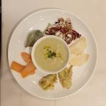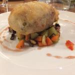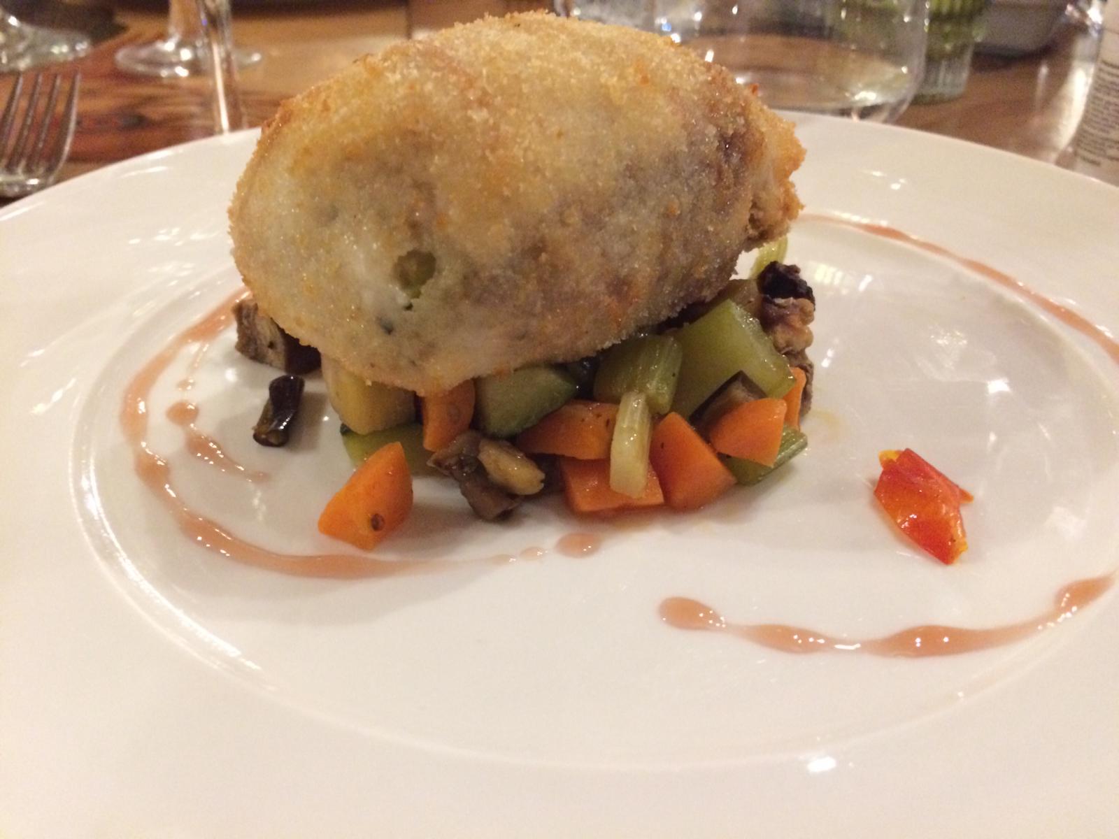 Si è svolta presso il ristorante dell’Hotel Martinelli, a Ronzo-Chienis, la riunione conviviale della Delegazione di Rovereto. In foto 1. La sala del ristorante, al tavolo in piedi il Delegato Germano Berteotti. Foto 2. Alcuni Accademici a tavola. Foto 3. Tempura di porri, sedano rapa e carote; radicchio tardivo all’aceto balsamico trentino; zuppa di cavolfiore. Foto 4. Canederlotti alla verza con fonduta di formaggi trentini.