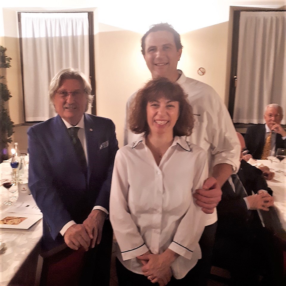 La Delegazione Milano Duomo ha organizzato la cena ecumenica 2019 sul tema "La pasta fresca, ripiena e gli gnocchi nella cucina della tradizione regionale" presso "Antica Osteria la Rampina", con un menu di ricette regionali lombarde presenti nel volume, edito dall’Accademia, e per l’occasione presentato dalla Delegata Maria Luisa Mandelli. Foto 1. Simposiarche della serata con la Delegata, Anna Mattioli e Marisa Zipoli, che hanno contribuito al menu, con alcuni piatti da loro preparati. Foto 2. La Delegata con Fernanda Maranesi, Delegata di Rio de Janeiro e Consultrice nazionale. Foto 3. La Delegata consegna il piatto dell'Accademia allo chef Lino Gagliardi. Foto 4. Il menu della riunione conviviale.