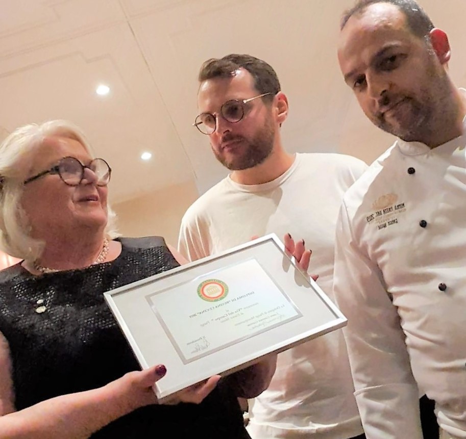 La Delegazione di Parigi Montparnasse ha organizzato la cena ecumenica 2019 sul tema "La pasta fresca, ripiena e gli gnocchi nella cucina della tradizione regionale" presso il Ristorante "Via del Campo" sito non lontano dalla Tour Eiffel. Il Vice Delegato Andrea Fesi ha illustrato magistralmente la nascita della pasta con un excursus dalle origini ai nostri giorni spiegando ai numerosi ospiti la "Tradizione regionale" proposta nel menu realizzato dallo Chef Enrico Masia. Alla serata hanno partecipato anche: la Console Generale Emilia Gatti (foto 1 con la Delegata), il Consigliere Culturale Ugo Ciarlatani (nella foto 2 al centro con la Delegata), alcuni Accademici di Ragusa e Modica (foto 3). In questa occasione la Delegata Laura Giovenco Garrone e il Vice Delegato Andrea Fesi hanno consegnato allo chef Enrico Masia il Diploma di Buona Cucina 2019 (foto 4).