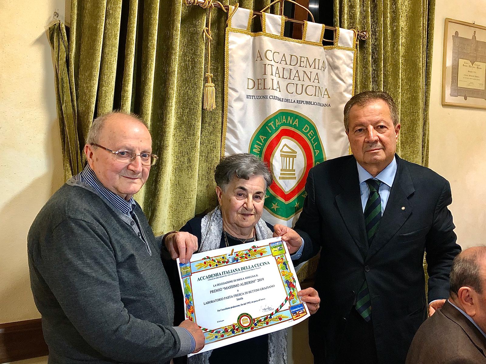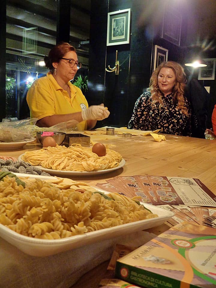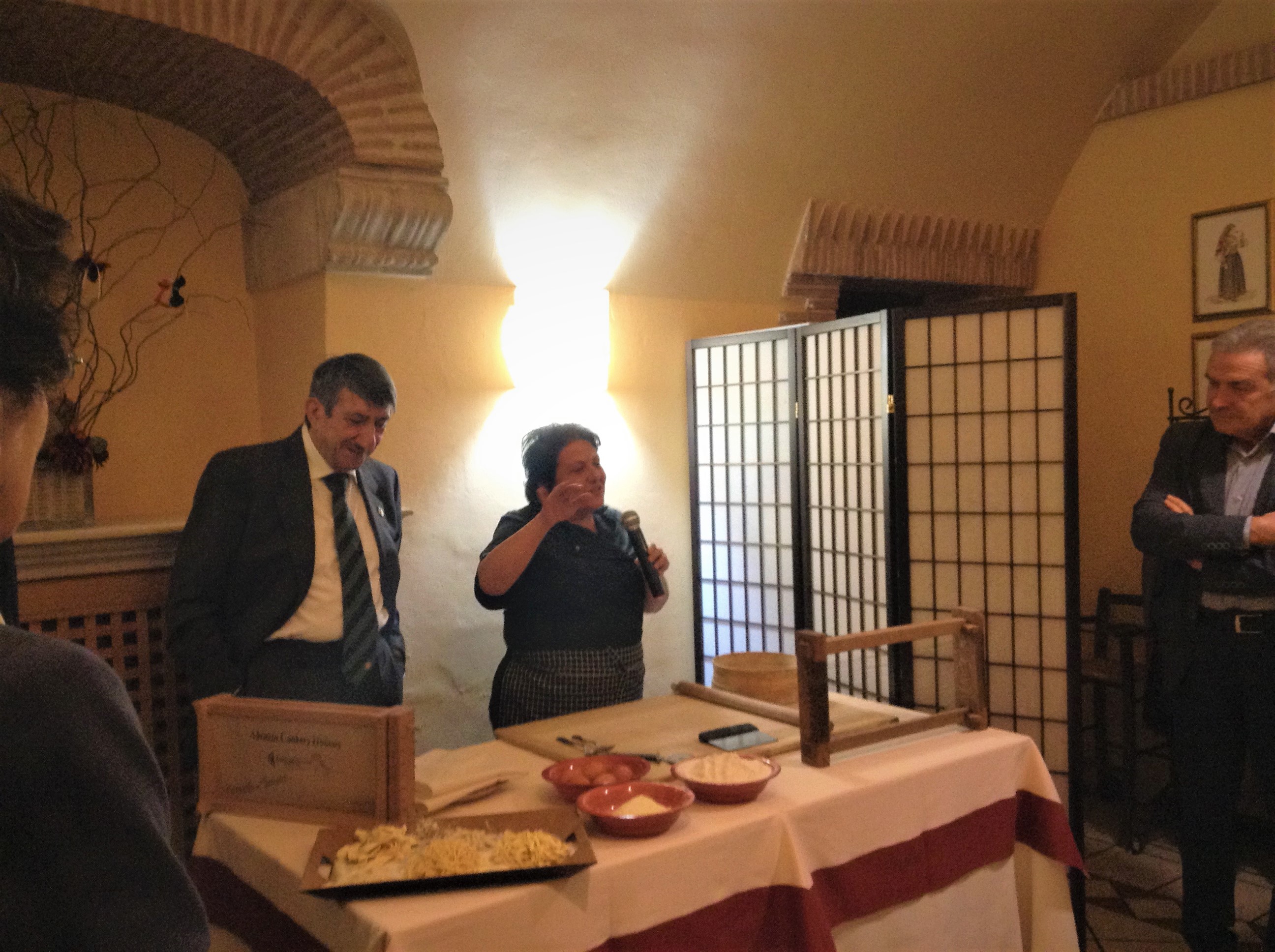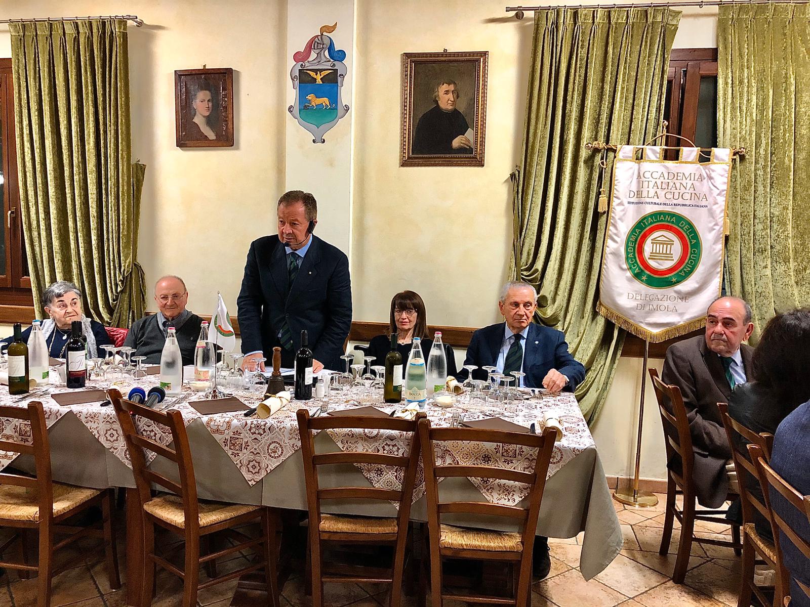 La Delegazione di Imola ha organizzato la cena ecumenica 2019 sul tema "La pasta fresca, ripiena e gli gnocchi nella cucina della tradizione regionale" presso l'agriturismo Frascineti. In questa occasione la Delegazione ha consegnato il premio "Massimo Alberini" al Laboratorio di Bettini Graziano per la trentennale attività di produzione di pasta fresca. Foto 1. Il Delegato Antonio Gaddoni apre la riunione conviviale illustrando le tipologie e le particolarità della pasta fresca del territorio. 2. La consegna del Premio Massimo Alberini al Laboratorio di pasta fresca di Bettini Graziano. Foto 3. La famiglia Frascineti che da tre generazioni gestice l'agriturismo. Foto 4. Tagliatelle e strozzapreti.