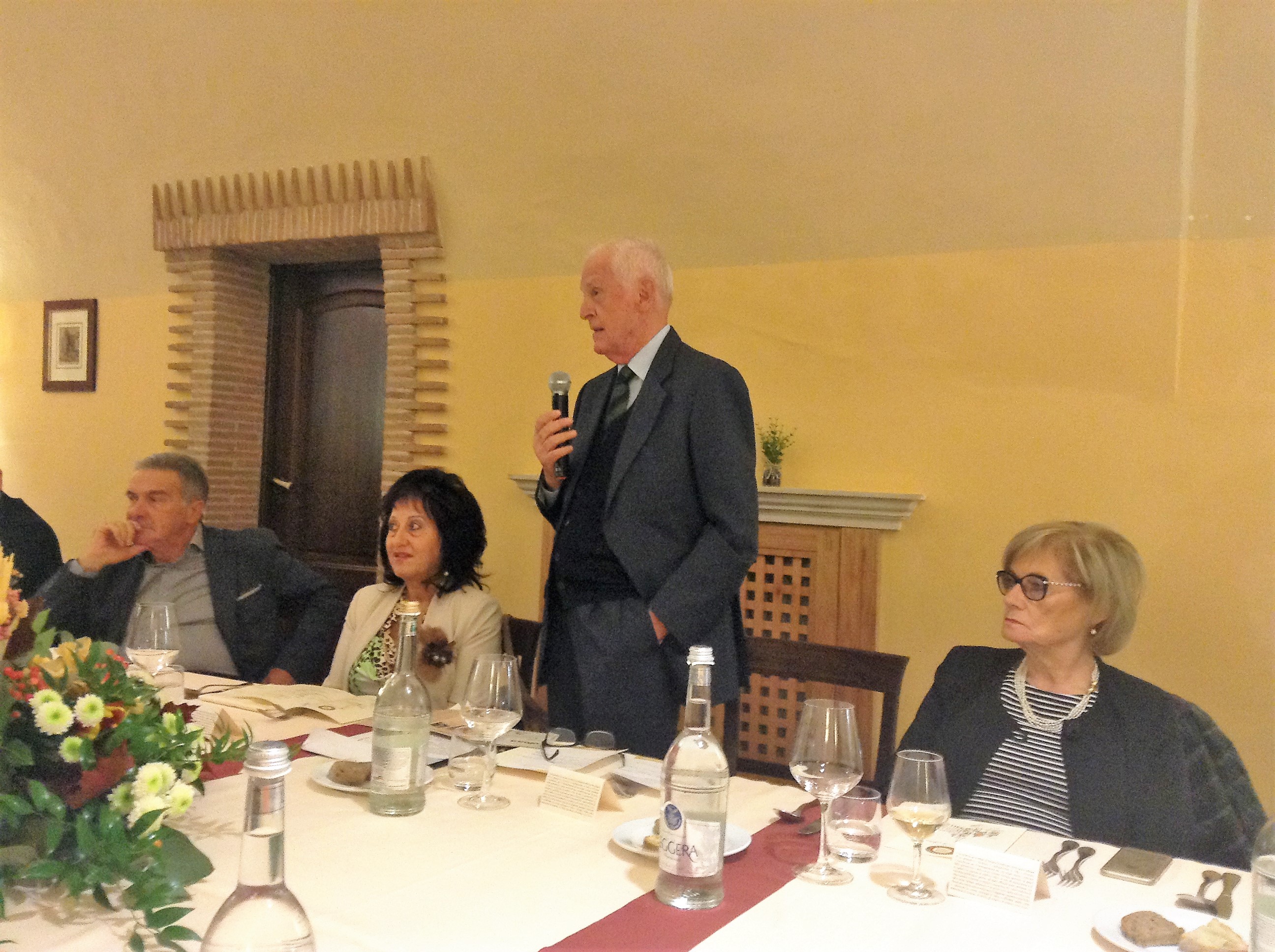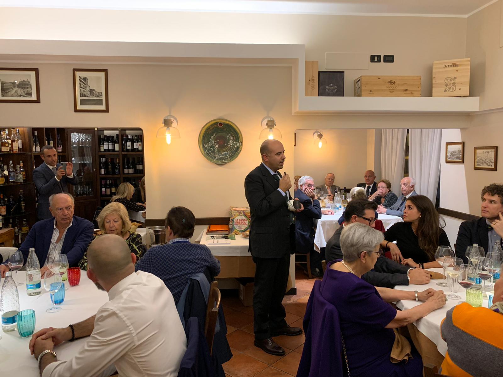 La Delegazione di Empoli ha organizzato la cena ecumenica 2019 sul tema "La pasta fresca, ripiena e gli gnocchi nella cucina della tradizione regionale" presso la “Trattoria Sciabolino” di Pozzale-Casenuove, frazione di Empoli. Il Delegato Massimo Vincenzini ha aperto la riunione conviviale ricordando ai presenti, tra cui numerosi ospiti, il significato e i valori dell’Accademia nonché della stessa Cena Ecumenica. Nel corso della serata Fabrizio Bagni (foto 1 con Delegato), cuoco e titolare della trattoria gestita dalla sua famiglia sin dal 1890, ha presentato l’ampia lista delle vivande selezionate per l’occasione dalla carta, tutte realizzate seguendo il libro delle ricette di famiglia; in ottemperanza al tema dell’anno, ha proposto Gnocchi all’ortica e Fagottini ripieni di pere e pecorino con salsa all’anatra. La Simposiarca Elisabetta Guerrieri (foto 2-3) ha poi ripercorso in breve la lunga e gloriosa storia del “Premio Letterario Pozzale - Luigi Russo”, istituito nel 1948 proprio in quella zona della campagna empolese, che vedeva anche la trattoria Sciabolino come luogo di incontro. Foto 3. Un momento della serata. Foto 4. Menu.