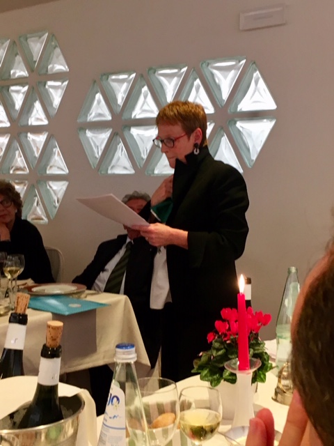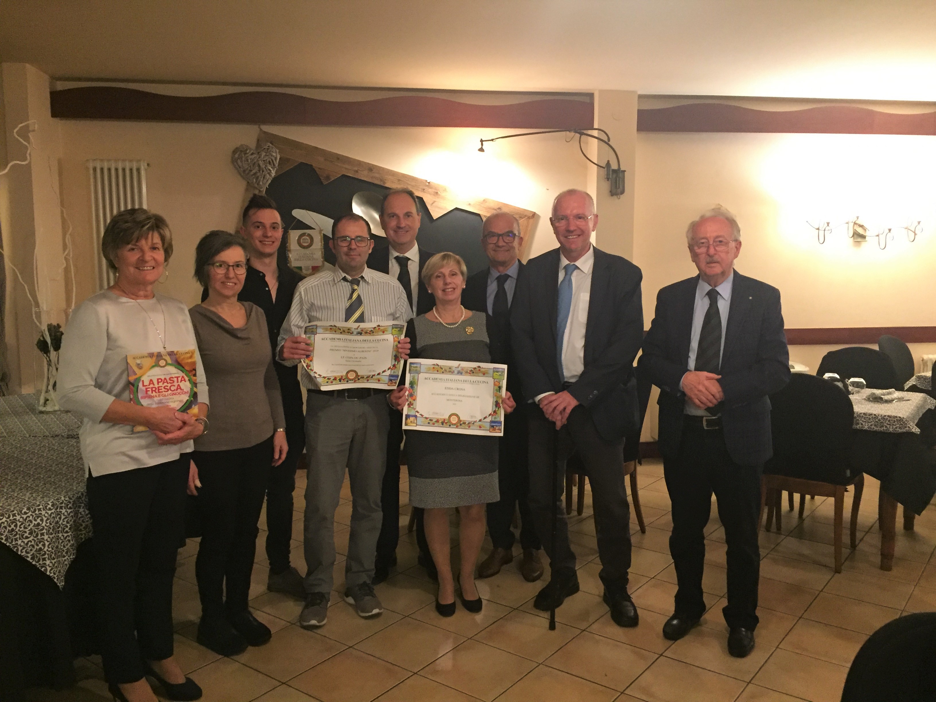 La Delegazione Monterosa ha organizzato la cena ecumenica 2019 sul tema "La pasta fresca, ripiena e gli gnocchi nella cucina della tradizione regionale" al ristorante "Cave des Amis" a Châtillon. Durante la cena il Delegato Jean-Claude Mochet ha consegnato il premio Massimo Alberini a Christian Trione ed Ernesta Leger, titolari del “Coin du Pain” di Saint-Christophe, alla presenza del vice Presidente della Regione Autonoma Valle d’Aosta e Assessore Regionale alla Finanze Renzo Testolin. In foto, da sinistra: Marisa Dujany, Ernesta Leger, Simone Dentella, Christian Trione, Jean-Claude Mochet, Edda Crosa, Renzo Carlotto, Renzo Testolin e Piergiorgio Bondaz.