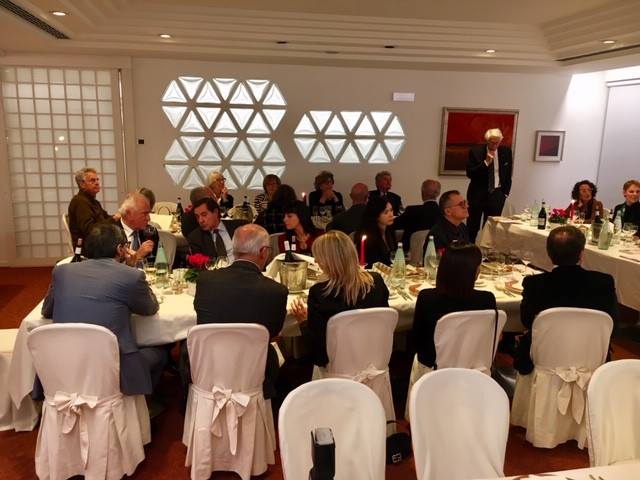 La Delegazione di Malta ha organizzato la cena ecumenica 2019 sul tema "La pasta fresca, ripiena e gli gnocchi nella cucina della tradizione regionale" al ristorante del Casinò Dragonara, dove per eventi speciali si occupa della cucina il qualificatissimo Claudio Schiavone, chef prediletto della Delegazione maltese. foto 1. Discorso introduttivo della Delegata Massimiliana Affanni Tomaselli sul tema della serata. Foto 2. Consegna alla Delegata dell'onorificenza di Cavaliere dell'Ordine della Stella d'Italia. Foto 3. La Delegata consegna le pubblicazioni accademiche allo chef Claudio Schiavone. Al centro sig.ra Federica Modena Sammartino e S.E. Ambasciatore Mario Sammartino. Foto 4. Una piatto dal menu.