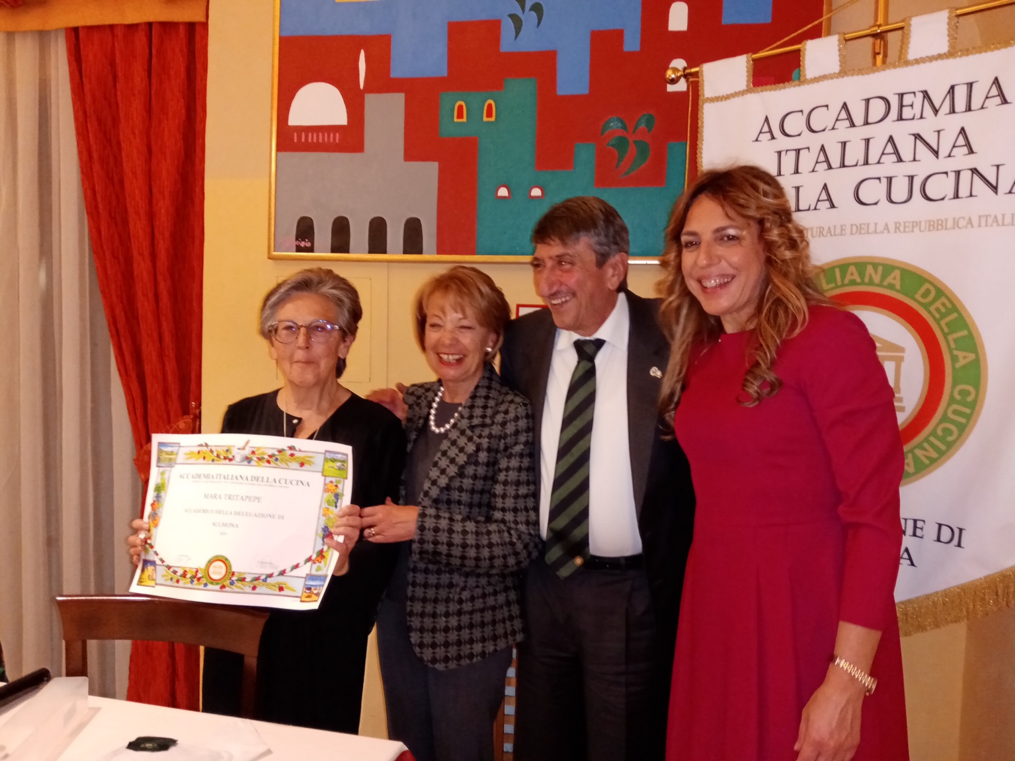 La Delegazione di Messina ha organizzato la cena ecumenica 2019 sul tema "La pasta fresca, ripiena e gli gnocchi nella cucina della tradizione regionale" presso il ristorante "Toro Nero" già visitato e apprezzato nel passato. Il Delegato Francesco Trimarchi (Foto 1) ha presentato il tema dell’Ecumenica in relazione alle peculiarità storico-culturali del territorio e il Consultore Attilio Borda Bossana (membro del CST Sicilia orientale) ha illustrato il volume dell’anno, integrato da un opuscolo edito dalla Delegazione e dedicato alle specificità messinesi. La Delegazione (Foto 2) ha unanimemente apprezzato tutte le portate, preparate filologicamente (Foto 3). Nel corso della serata il Delegato e il Segretario Giovanni Rossi hanno premiato la giovane Manuela Giordano, migliore diplomata in pasticceria dell’IIS "Antonello" (Foto 4).