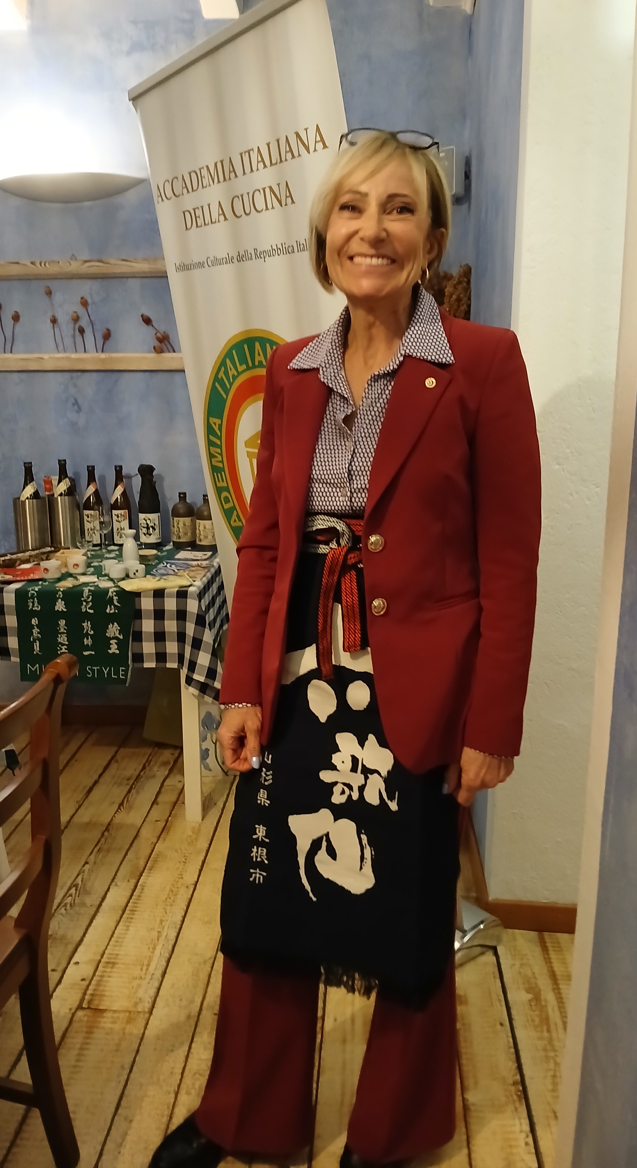 Serata culturale dedicata alla bevanda tradizionale giapponese, il sake, in abbinamento al cibo italiano. Si sono prestati alla degustazione Stefania Mosso con Jun Nakajimasi de La Taverna del Gufo di Occhieppo che hanno preparato le specialità tipiche del ristorante per meglio accompagnare il sake. Ecco quindi un tortino di riso Venere con trota marinata all’aneto abbinato a Dewazakura Tsuyahime Junmai Ginjo servito freddo e dall’aroma fruttato e floreale, dei ravioli di carciofi e ricotta al profumo di maggiorana solitamente difficile da abbinare al vino, ma possibile con Sohomare Kinoto Junmai servito a temperatura ambiente e con gusto corposo e umami, un fritto piemontese abbinato a Otokoyama Rajin Honjozo servito in due modi, a temperatura ambiente e caldo, ed infine un semifreddo al torrone abbinato a Shirayuki Edo Genshu dal colore ambrato e dal profumo di fungo secco. Il mondo della bevanda giapponese, chiamata anche nihonshu, è stato illustrato da Brunella Bettati Sake Sommelier ed Educator che ha incantato gli Accademici con i suoi racconti appassionati. La serata si è conclusa con i ringraziamenti e gli omaggi di rito agli artefici della cena.