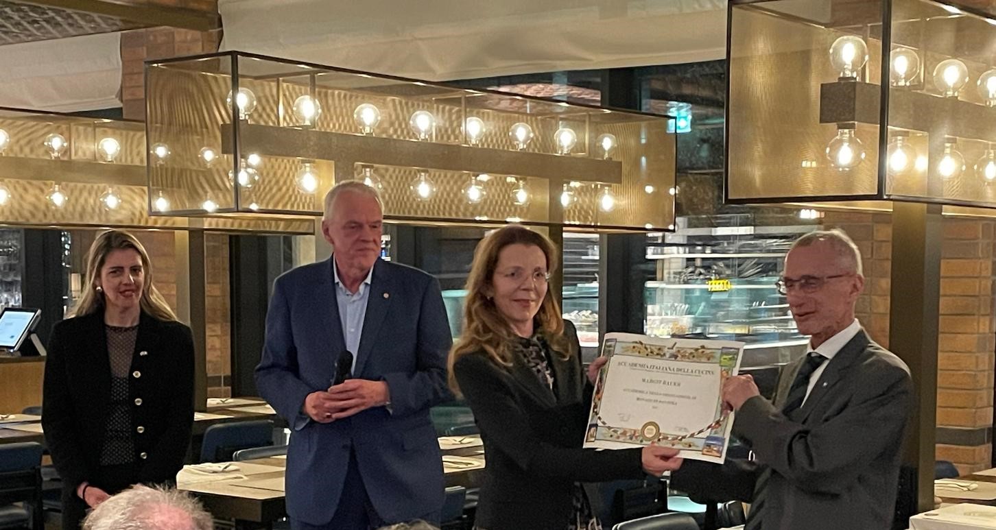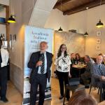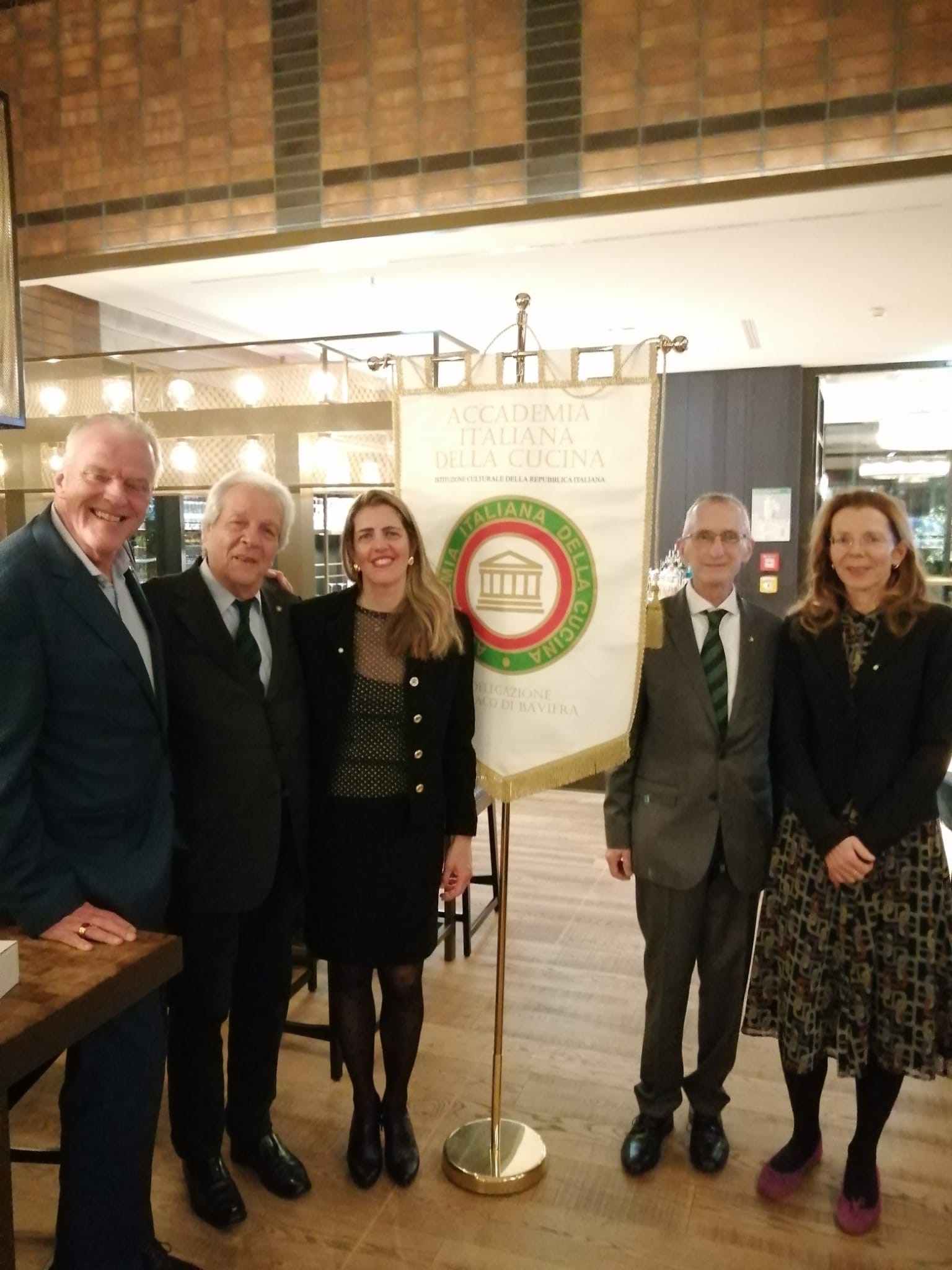 L'incontro “Viaggiatori tedeschi nell’Italia del ‘700” e la cena conviviale sono stati organizzati grazie alla collaborazione tra il Consolato Generale d'Italia a Monaco e la Delegazione di Monaco di Baviera dell'Accademia. L'evento, aperto dal Console Generale Sergio Maffettone, ha guidato i partecipanti lungo i percorsi del Gran Tour. Nel suo intervento, il Console ha ribadito l'importanza di continuare la stretta cooperazione con la Delegazione dell'Accademia. Klaus Kempf, esperto di letteratura tedesca e italiana, ha illustrato come i viaggiatori tedeschi del '700, pionieri del turismo, fossero studiosi desiderosi di ampliare le loro conoscenze, osservando anche le abitudini quotidiane, in particolare quelle legate alla cucina, all'ospitalità, alle tecniche agricole, e altro ancora. In questa particolare occasione, sono stati nominati tre nuovi Accademici: Margit Bauer, Erica Rustia e Herman Zaaiman, che hanno ricevuto il diploma di appartenenza e il benvenuto da parte degli altri membri presenti. Il menù, curato dallo chef Marco De Cecco, ha accompagnato il tema della serata, proponendo un viaggio culinario in Italia, dal Friuli Venezia Giulia alla Sicilia. Il ristorante Assoluto dell’Hotel Marriott City West, che ha ospitato per la prima volta l’Accademia, è stato scelto come sede dell’incontro su proposta del Consolato Generale e della neo Accademica Erica Rustia, responsabile del cerimoniale presso il Consolato.