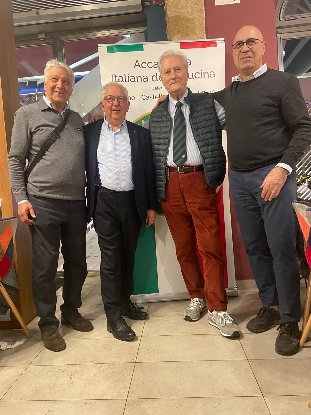 Riunione conviviale all’insegna dell’amicizia fra la Delegazione di Alcamo-Castellammare del Golfo e la Delegazione di Vienna con la presenza del Delegato Franco Benussi con altri Accademici. Dopo aver visitato le cantine Cassarà con una degustazione di vini e un tour al centro storico di Alcamo, le due Delegazioni si sono riunite per il convivio presso il ristorante Triscele. Il menu a base di pesce proposto dallo chef Giuseppe Alessandro è stato apprezzato da tutti i commensali. Squisiti gli antipasti e in particolare la caponata di pesce san Pietro. Ben equilibrato il condimento della pasta con finocchietto selvatico e sarde. Ottimo l’accostamento del vino. Servizio attento e professionale.