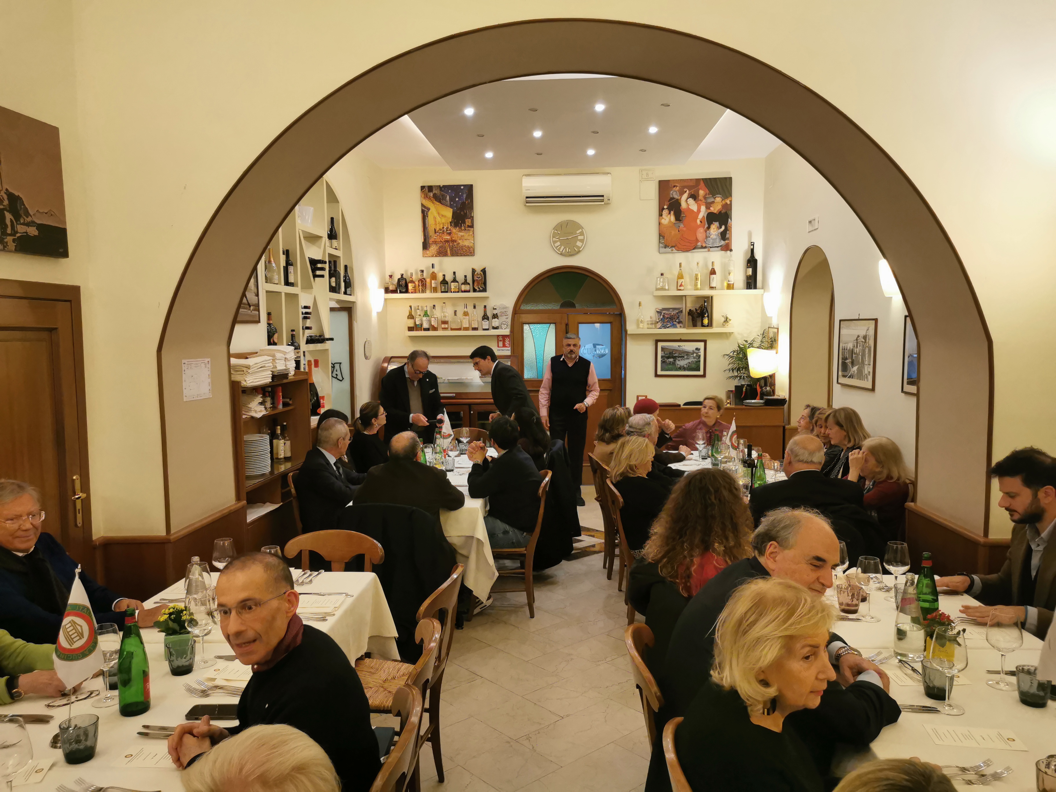 È “AL Poeta” che si è tenuta la riunione conviviale di marzo della Delegazione Napoli. Come di consueto, l’appuntamento è stato caratterizzato da riflessioni e approfondimenti su questioni di interesse culinario. Nella scelta del tema “Dalla tavola al Parnaso: quando il poeta canta la cucina” ha certamente influito il nome del ristorante che dal 1981 è un punto di riferimento per la ristorazione cittadina. Il legame tra la cucina e la poesia è stato rievocato dall’Accademico Pasquale Passalacqua che, attraverso aneddoti e la lettura di versi dedicati alla cucina, ha tratteggiato le affinità tra queste due appaganti forme d’arte. Scelto per la sua vocazione alle preparazioni classiche e la giusta atmosfera per gustarle pienamente, “Al Poeta” ha confermato le aspettative dei convitati con un menù totalmente incentrato sul mare di Posillipo. Tra le portate, da menzionare la freschezza della seppia con gli agrumi, il kiwi e il pomodoro e la rotondità del gusto dei polipetti di “pietra Salata” affogati; gradevolissima la creme caramel di cui “Al Poeta” è tra gli ultimi custodi della ricetta originale. Si segnala, infine, l’ingresso nella Delegazione di Federico Scalingi.