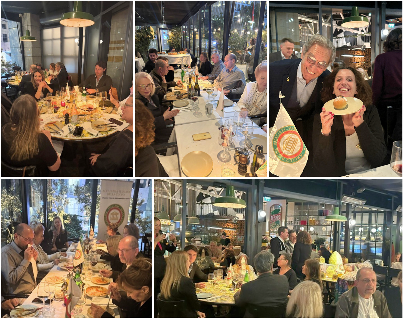 Evento conviviale della Legazione presso La Fornaretta, un ristorante situato ai piedi della Sierra Nevada, nella città di Newcastle. Il rapporto tra la Legazione e il ristorante si è consolidato nel tempo e lo chef Giancarlo Di Lorenzo ha creato una cena d'eccezione costruita attorno alla piccata di vitello al limone e capperi in salsa di vino bianco e ai tortellini ripieni di prosciutto, parmigiano e pesto. La pasta è stata fatta in casa utilizzando la semola di grano duro Tumminia, un grano antico coltivato in Sicilia e proveniente da Molini del Ponte a Castelvetrano. Il sapore della pasta di grano di Tumminia risulta più nocciolato e offre una persistenza sapida al palato rispetto alla pasta prodotta con semola di grano tenero. Entrambe le tipologie di farina sono eccellenti e presentano profili aromatici distinti. La piccata di vitello è stata eccezionale, gli Accademici sono rimasti colpiti dal sapore e dalla presentazione e hanno assegnato al piatto il massimo dei voti, sicuramente un piatto da non perdere. Questa terza visita della Legazione a La Fornaretta ha confermato un miglioramento del ristorante rispetto all’anno precedente, segno concreto dell’influenza positiva dell’Accademia Italiana della Cucina.