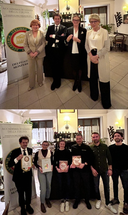 La Delegazione del Monferrato si è riunita per un incontro conviviale a Vignale Monferrato, un comune poco distante da Casale Monferrato, già citato in un documento di Federico I Hohenstaufen del 1164. Il Delegato Pietro Caire ha scelto per la serata un ristorante-trattoria storico: “Serenella – Le Tre Lasagne”. Il nome “Tre Lasagne” deriva dal fatto che il locale è gestito dalle tre sorelle Lasagna. Qui si propongono piatti della tradizione monferrina e, come dichiarato dai gestori, la loro filosofia è quella di valorizzare al massimo i prodotti del meraviglioso Monferrato. Inoltre, la carta dei vini conta oltre 100 etichette, con eccellenze sia monferrine che provenienti da altre regioni d’Italia. Il Delegato, dopo aver descritto il menù, ha ceduto la parola all'Accademico Giovanni Chiarle, il quale ha tenuto un’interessante dissertazione sul consumo di vino ai giorni nostri, anche in relazione al cibo, presentando informazioni poco conosciute anche dagli Accademici più esperti. Successivamente, lo chef Antonio Cerami ha spiegato il lungo procedimento per preparare il suo arrosto "cappello del prete", piatto che potremmo definire introduttivo al tema della Cena Ecumenica. La serata, come di consueto, si è svolta all’insegna dell’amicizia, con la presentazione di tre nuove Accademiche: Serena Monina, Margherita Panzanella e Paola Barbesino.