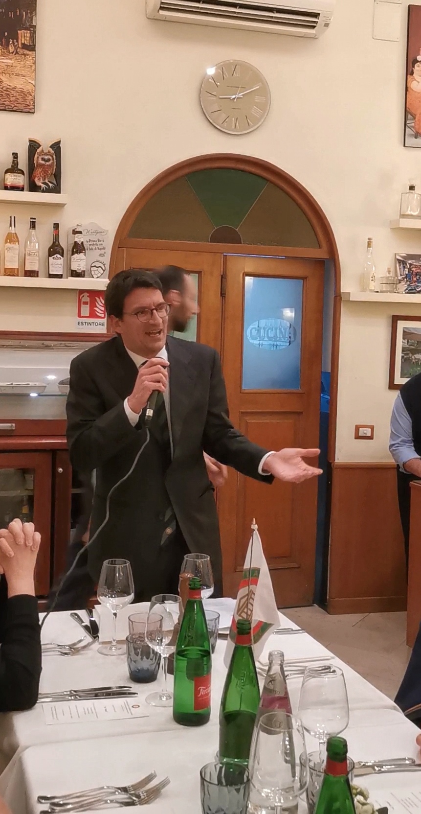 La riunione conviviale di marzo è, come sempre, dedicata alla cultura. Quest’anno, la Delegazione si è ritrovata al ristorante Villa Oretta. Gradito ospite e relatore della serata è stato Leonardo Granata, giornalista e scrittore, che ha curato dal punto di vista paleografico il ‘Libro de Cosina’, uno dei testi più noti della cultura gastronomica medievale e rinascimentale. Attribuito a Maestro Martino, principe dei cuochi e considerato l’artefice di una vera e propria rivoluzione culturale nell’arte della gastronomia, il libro, che risale circa alla metà del Quattrocento, preserva un pezzo fondamentale della nostra storia culinaria, rendendo accessibili conoscenze e tradizioni che rischiavano di perdersi nel tempo. Un’opera che celebra l’eccellenza del nostro patrimonio culturale e gastronomico, ora resa disponibile per le generazioni future.