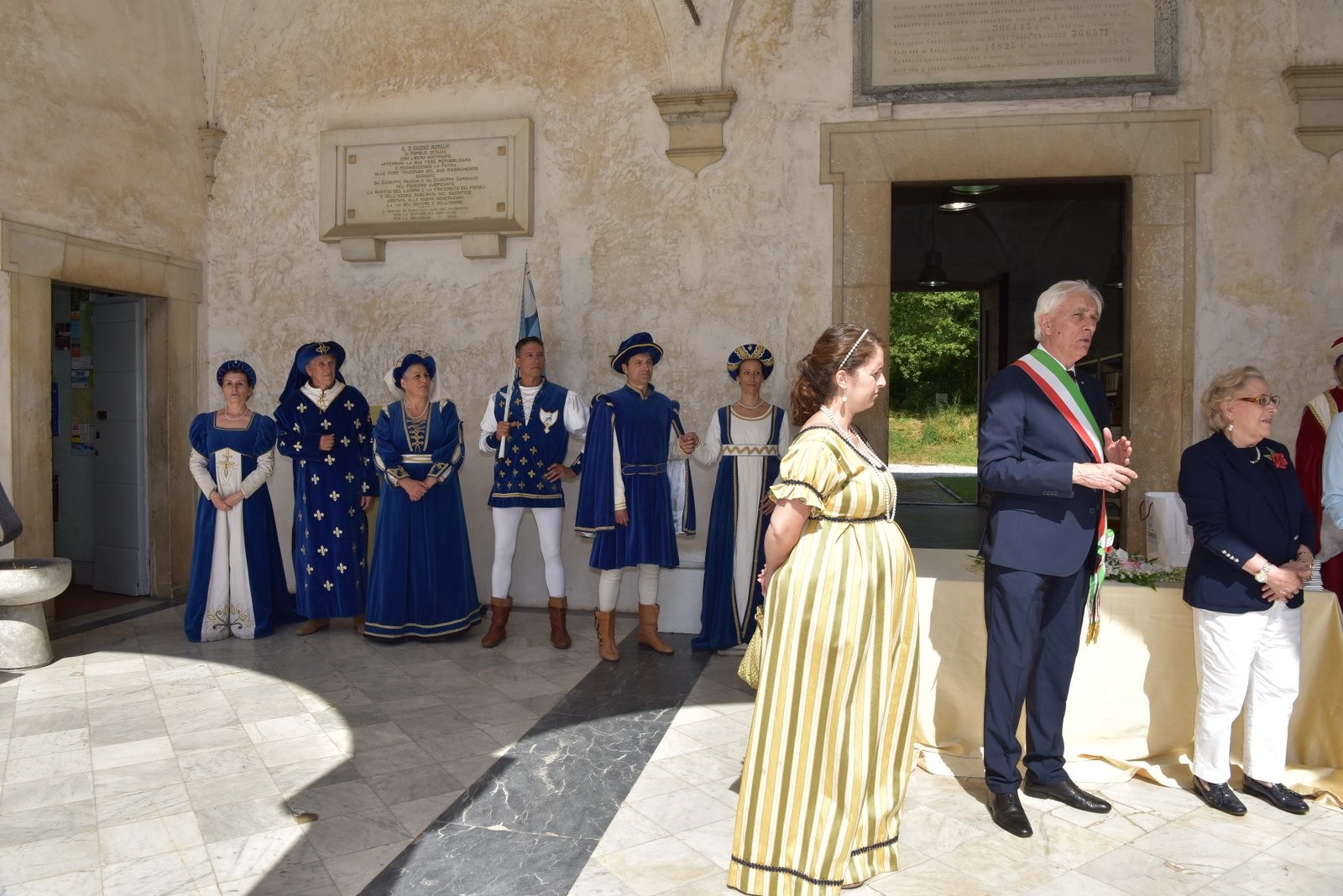 La Delegazione di Bologna dei Bentivoglio ha incontrato la Delegazione della Versilia Storica a Seravezza per una visita al Palazzo Mediceo, patrimonio dell'Unesco, cui è seguita una riunione conviviale presso il ristorante "Tre Stelle". Il Sindaco di Seravezza e Vice Delegato della Versilia Storica Riccardo Tarabella e la Delegata Anna Ricci, hanno condotto gli ospiti alla scoperta della Villa Medicea. Foto 1. Il saluto del Sindaco al Delegato di Bologna dei Bentivoglio Giorgio Palmieri. Foto 2. Il Sindaco, la Delegata Anna Ricci e figuranti in costume medievale. Foto 3. Il tavolo con Delegati, il Vicedelegato e il Segretario Cavirani. Foto 4. Anna Ricci e Giorgio Palmeri con il proprietario del ristorante "Tre Stelle".