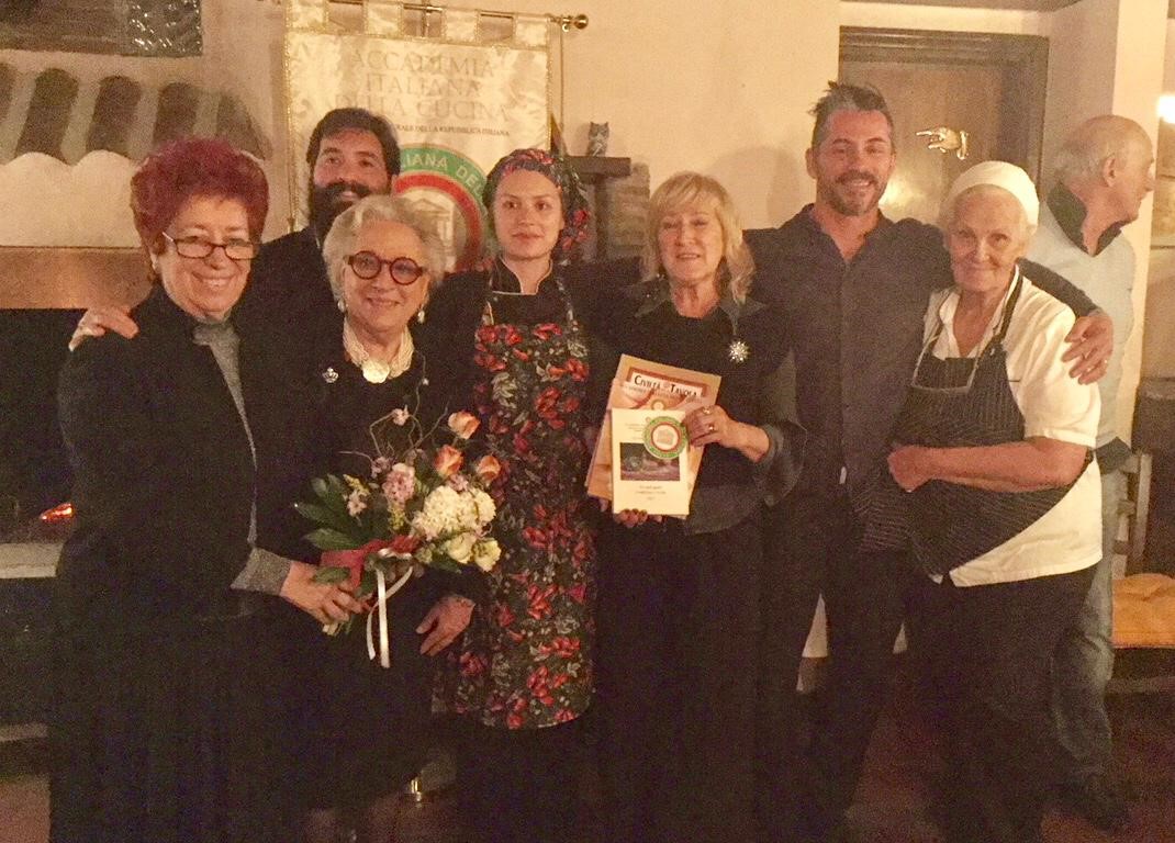 La Delegazione della Versilia Storica ha organizzato la riunione conviviale della Cultura presso il ristorante "La Vineria" in Pietrasanta (LU). Foto 1. La Delegata Anna Ricci Pinucci con l'Accademica Paola Baronti che ha tenuto una breve relazione dal titolo “La pasta più ghiotta: amore al primo assaggio“. Foto 2: Accademici. Foto 3: La brigata di cucina con il simposiarca Riccardo Maria Cavirani e la relatrice Paola Baronti. Foto 4. piatto tipico versiliese: tortelli al ragù.