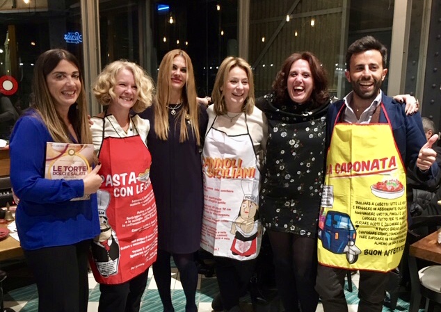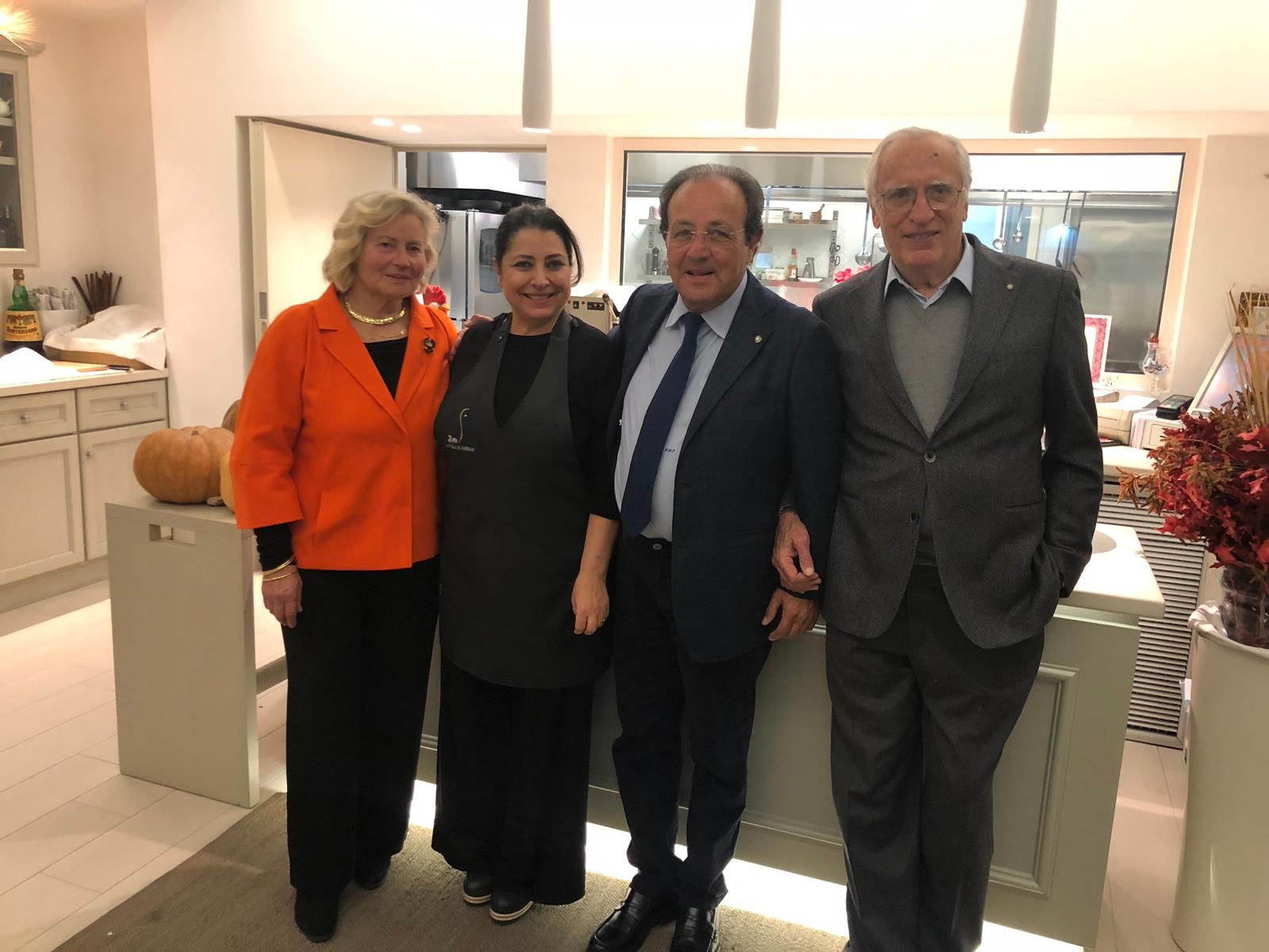 La Delegazione di Tel Aviv si è riunita presso il ristorante "Sicilia" a Giaffa per la prima cena conviviale del 2019. Foto 1: S.E. Ambasciatore d'Italia Gianluigi Benedetti, la Delegata Cinzia Klein e lo chef del Ristorante Sicilia Adi Meiri. Foto 2: la Delegata Cinzia Klein (a sinistra) con la chef Emanuela Panke che ha organizzato un quiz sul cibo siciliano per accompagnare la serata. Foto 3: un momento della serata. Da sinistra la chef Emanuela Panke, Dina Weinstein, la Delegata Cinzia Klein, l'Accademica Onoraria Sabina D'Antonio, la Vice Delegata Sabrina Fadlun e l'attaché dell'ufficio commerciale dell'Ambasciata dottor Francesco Meucci. Foto 4: dolce meringato al limone.