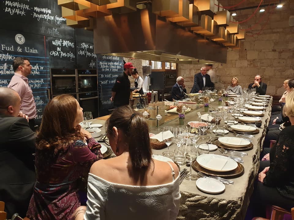 La consulta della Delegazione di Budapest si è riunita al ristorante "Casa Pomo d'Oro" con un menu incentrato sulla cucina siciliana. Foto 1: in piedi il Delegato Alberto Tibaldi e a tavola i Consultori della Delegazione. Foto 2: lo chef Alessandro Manna.