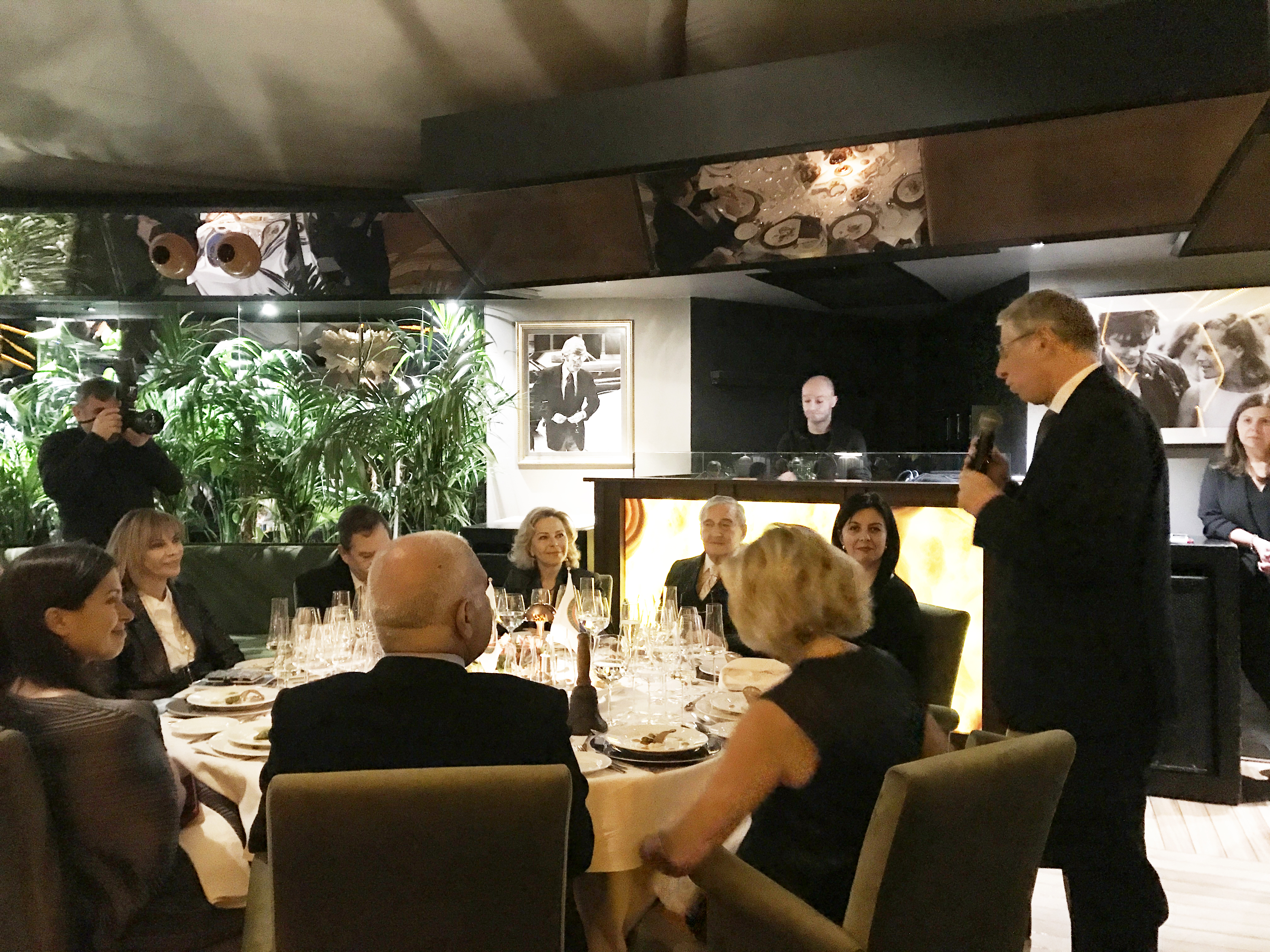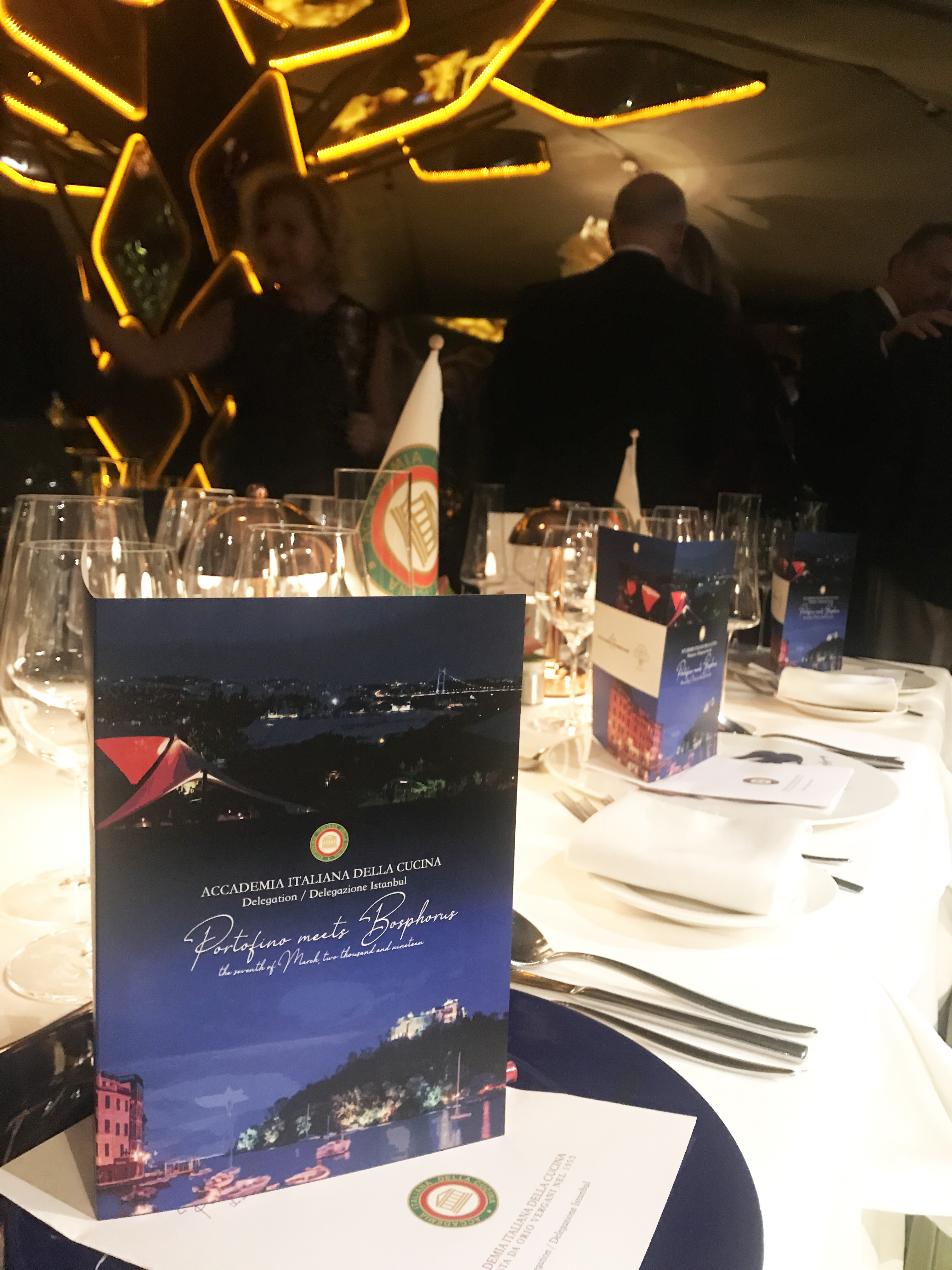 La Delegazione di Istanbul ha organizzato una riunione conviviale presso il "Sunset Restaurant" a Istanbul. Tema della serata: "Portofino incontra il Bosforo", una cena basata su piatti tipici di pesce della cucina ligure. Foto 1. Ospite della serata, S.E. l'Ambasciatore Massimo Gaiani. Foto 2. La Delegata Dilek Bil consegna il piatto dell'Accademia all'Executive Chef Corrado Corti. Foto 3. Accademici e ospiti a tavola.