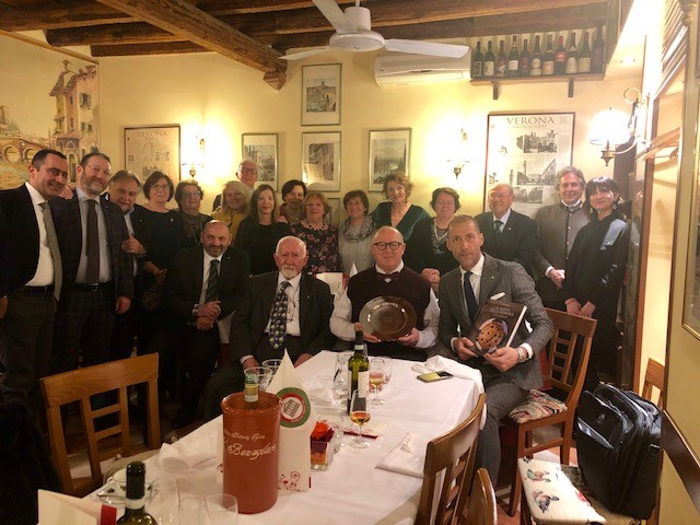 La Delegazione di Verona si è ritrovata presso l'Antica Trattoria al Bersagliere, situata nel cuore di Verona. Il titolare Leopoldo Ramponi ha intrattenuto gli Accademici sul tema “Il ruolo delle confraternite enogastronomiche sul territorio veronese”. Simposiarca della serata, il Consultore della Delegazione Pietro Canepari. Foto 1. Accademici, ospiti e titolare del locale. Foto 2 (da destra): il Delegato di Verona Fabrizio Farinati, il Simposiarca Pietro Canepari e Leopoldo Ramponi.