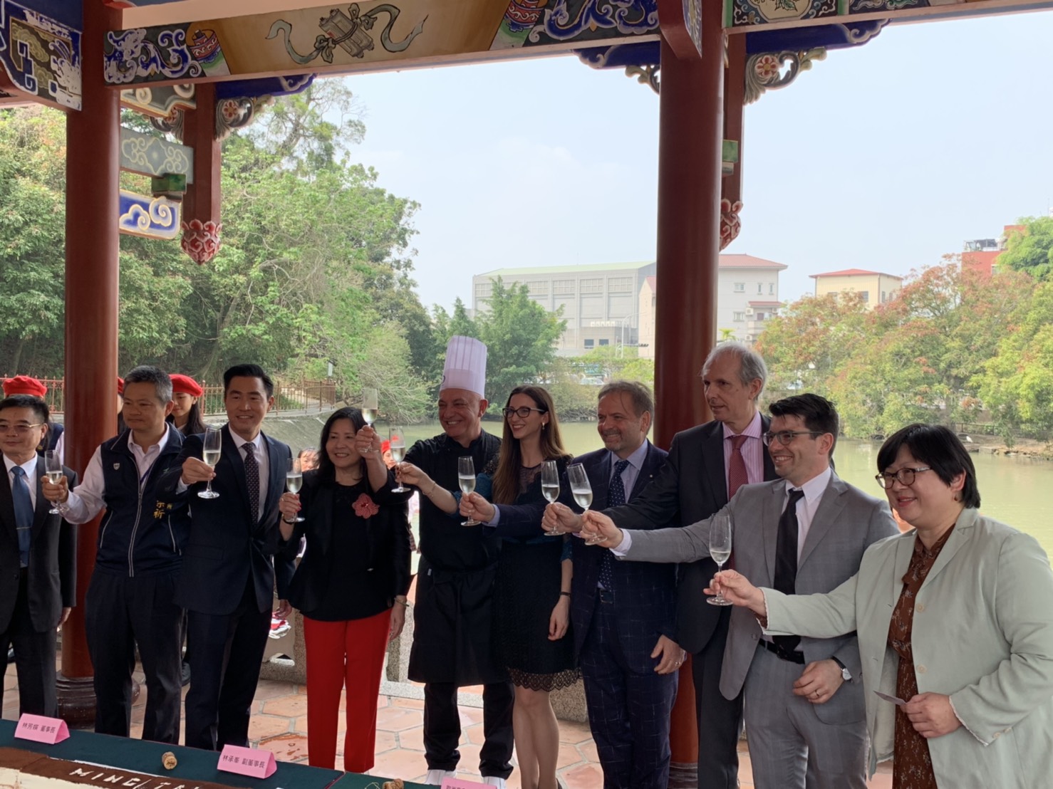 In foto, un evento organizzato dalla prestigiosa MingTai High School di Taichung (Taiwan) che ha dato il via al secondo Corso di Cucina Italiana in collaborazione con AMICA (Accademia Mediterranea e Italiana di cucina in Asia). All'evento cui ha preso parte, per l'Accademia, il Legato di Taiwan Giuseppe Izzo (foto 1), oltre agli studenti erano presenti una sessantina di Presidi di altre scuole, numerosi giornalisti e una rappresentanza italiana. Lo chef Ferrarini ha realizzato, con gli studenti, un tiramisu lungo 8,888 metri.